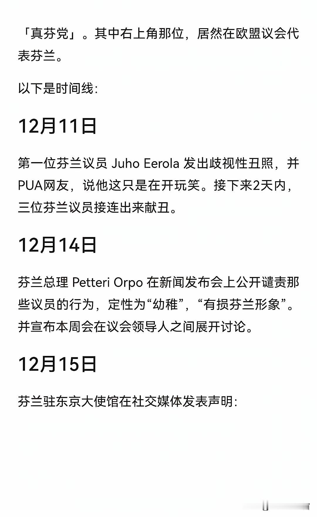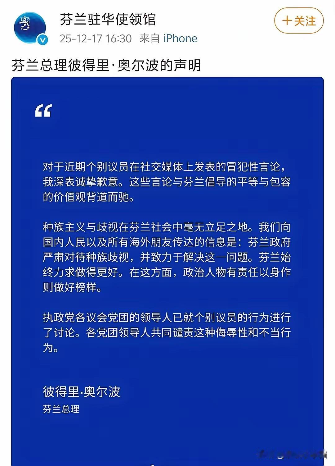 关于芬兰道歉问题是无法原谅的。 长久以来,只是觉得那种歧视行为,只是真对咱们中