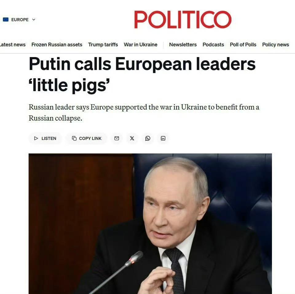 俄罗斯总统普京在昨天的"俄罗斯国防部委员会扩大会议"上确实说过一句话 "…这帮欧洲猪…", 西媒瞬间炸了! 普京确实说过这句话, 为不断章取义, 完整的话是这样说的:"…所有人都以为俄罗斯会在短时间内解体,而欧洲猪崽们立刻就参与到这项工作中来, 甚至在美国政府之前, 指望在俄罗斯解体中捞取好处。" 普京终于忍不住说出来了真话。