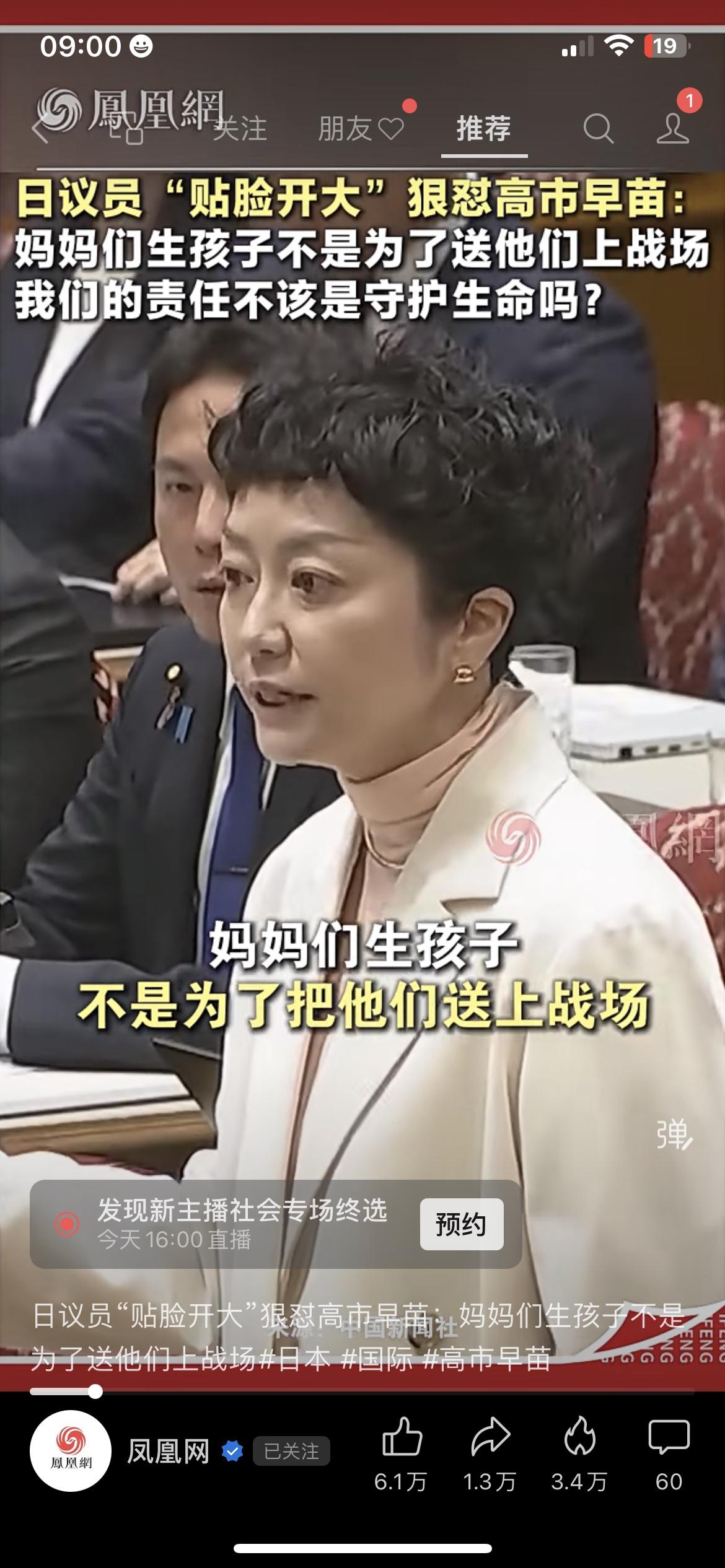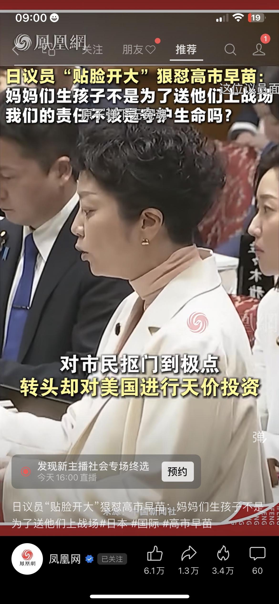 刷新三观!咱网友注意,日议员怒怼高市早苗(这话太敢说) 最近关注国际新闻的朋友注意!凤凰网刚发的视频火了,看完直呼解气! ① 日议员直言“生孩子不是为了送战场”,直播间网友刷屏说“说到心坎里了” ② 议员还吐槽政府对市民抠门、对美天价投资,评论区都夸她敢讲真话 ③ 高市早苗当场哑口无言,国际媒体说这是日本政坛少见的激烈交锋 你觉得这位日议员的发言戳中要点了吗?评论区聊聊~ 高市早苗内阁