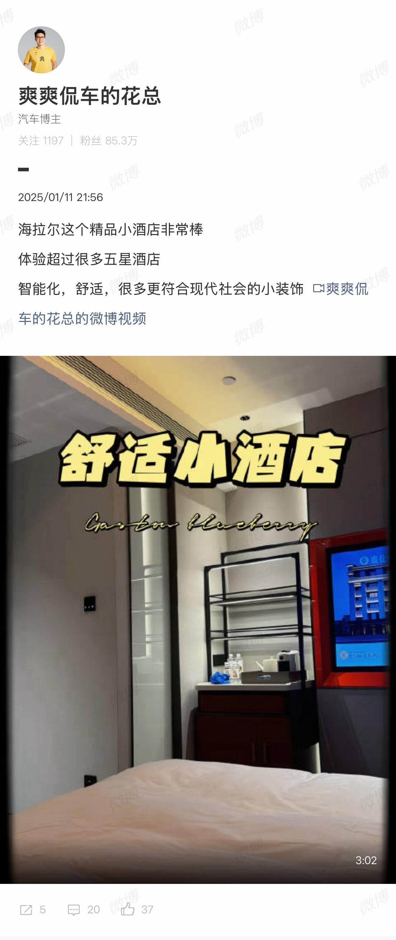大家来牙克石可以选择这个 嘉士顿·蓝莓酒店。去年他们刚开业,年初的时候来过一次,当时还发了个微博点评了一下。结果,这次来小姐姐还认识我(大概率看我衣服认出来的),说感谢我当时推荐,这让零下二十多度的天气突然温暖了起来。当然,她应该是我微博粉丝~ 牙克石·嘉仕顿·蓝莓酒店GASTON Blueberry