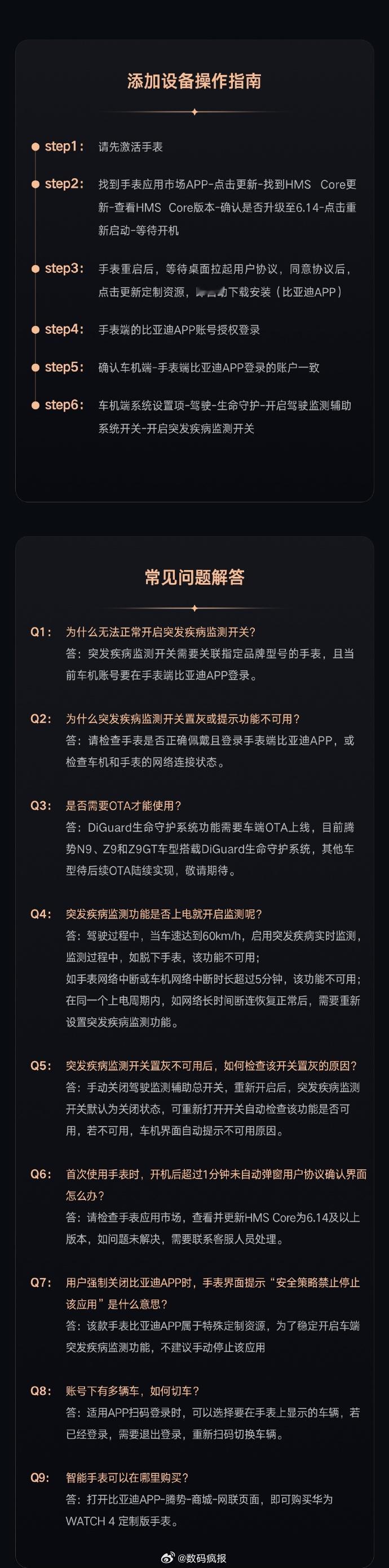 腾势 N9、腾势 Z9 GT、腾势 Z9 等车型搭载 DiGuard 生命守护系统,可联动华为穿戴设备实时监测生理指标,支持异常状态即时提醒若驾驶员对座舱预警提醒无响应,车机会自动呼叫腾势品牌专属救援客服手表和车机联动,监测开车时状态,这下更安全了啊!