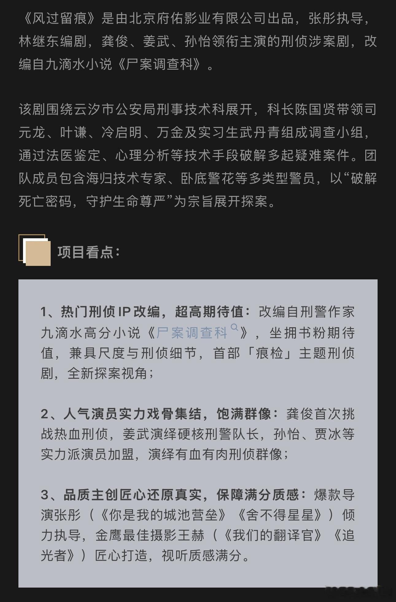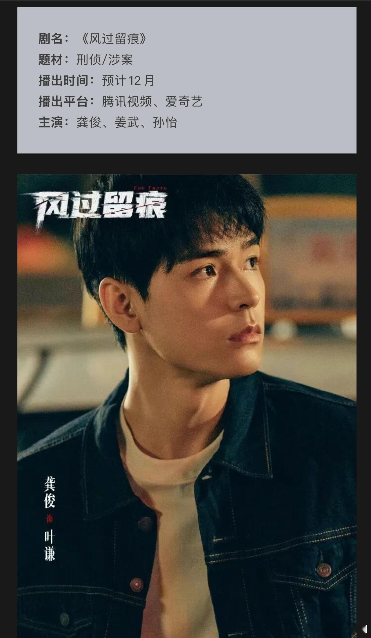 龚俊主演刑侦剧《风过留痕》开始播前招商,预计腾讯视频&爱奇艺12月开播,期待