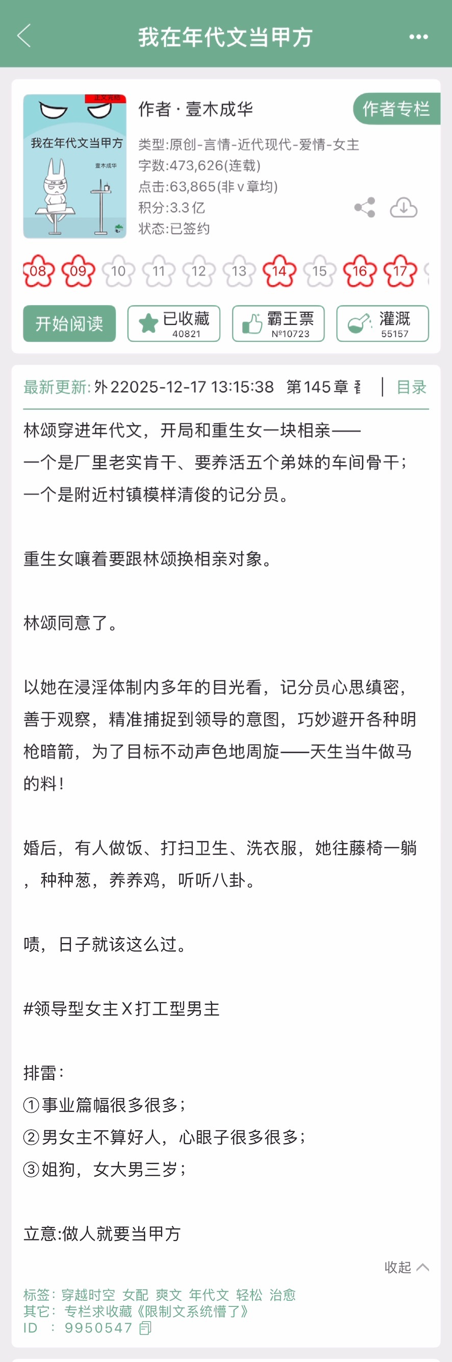 壹木成华的《我在年代文当甲方》完结啦!年代文➕姐狗,领导型女主x打工型男主