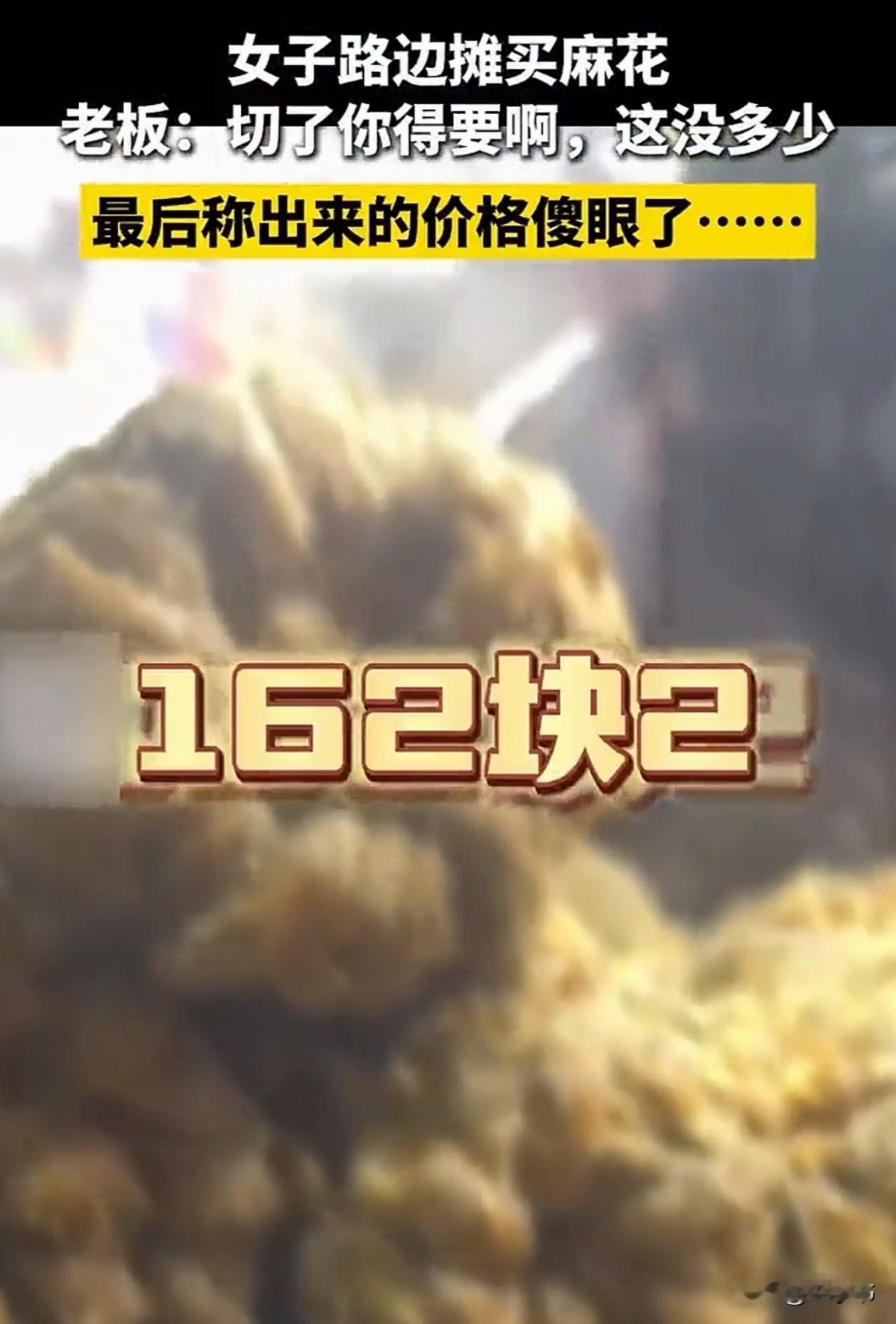 还是被宰了!广东江门,一姑娘在路边摊想买点麻花,说好38一斤,感觉也没有多贵,没想到一刀下去,直接切出来162.2的麻花! 当时女子还没站稳呢,老板就抢先开口,反复强调一句话:“切了你可得要啊!” 这话听着就有点别扭,让姑娘心里直打鼓,赶紧追问老板:“不能太贵啊,这些到底多少钱?” 老板含糊地说38块钱一斤,姑娘琢磨着,一斤38倒也还行,便半开玩笑地回了句:“行,你别宰我就成。” 谁知老板手起刀落,马上就切了一大块,女子问这些多少钱,老板直接报数:162块2! 姑娘当场就愣住了,明明感觉没多少,怎么一下就奔着小两百去了?这跟她心里预估的“没多少钱”差得可不是一星半点,让她直嘀咕这跟切糕有啥区别? 说真的,这种“切完才知天价”的套路,往里细琢磨,全是生意经里的“坑”。 老板那句“切了得要”根本不是提醒,而是心理施压的“话术锁”。 他先用这句话制造一种“君子协议”的氛围,让人不好意思反悔,把消费者的退路给堵死。 女子一答应,他后面怎么定价都显得“合理”了。 38元一斤的单价听着不吓人,但老板又不告诉你具体切多少、总价多少。他利用的就是人们对重量不敏感的心理弱点。 麻花压实了,一小块可能就挺沉,等你反应过来,刀已经落下,生米煮成熟饭。 这种“信息差”战术,是很多模糊定价商品的惯用伎俩。 而且这事儿最麻烦的是“证据难抓”,东西已经切了,很难证明当初他是否误导了人。 除非像有些较真的消费者,全程录像或立刻找公平秤复核,否则往往只能吃哑巴亏。 这也提醒我们,对付这种“口头营销”,留个心眼、保留凭证有多重要。 但说到底,诚信经营才是长久之道,今天有人被麻花“坑”,明天大家看到所有路边摊可能都会心里打鼓。 靠小聪明宰客,最终砸的是所有摊贩的饭碗!