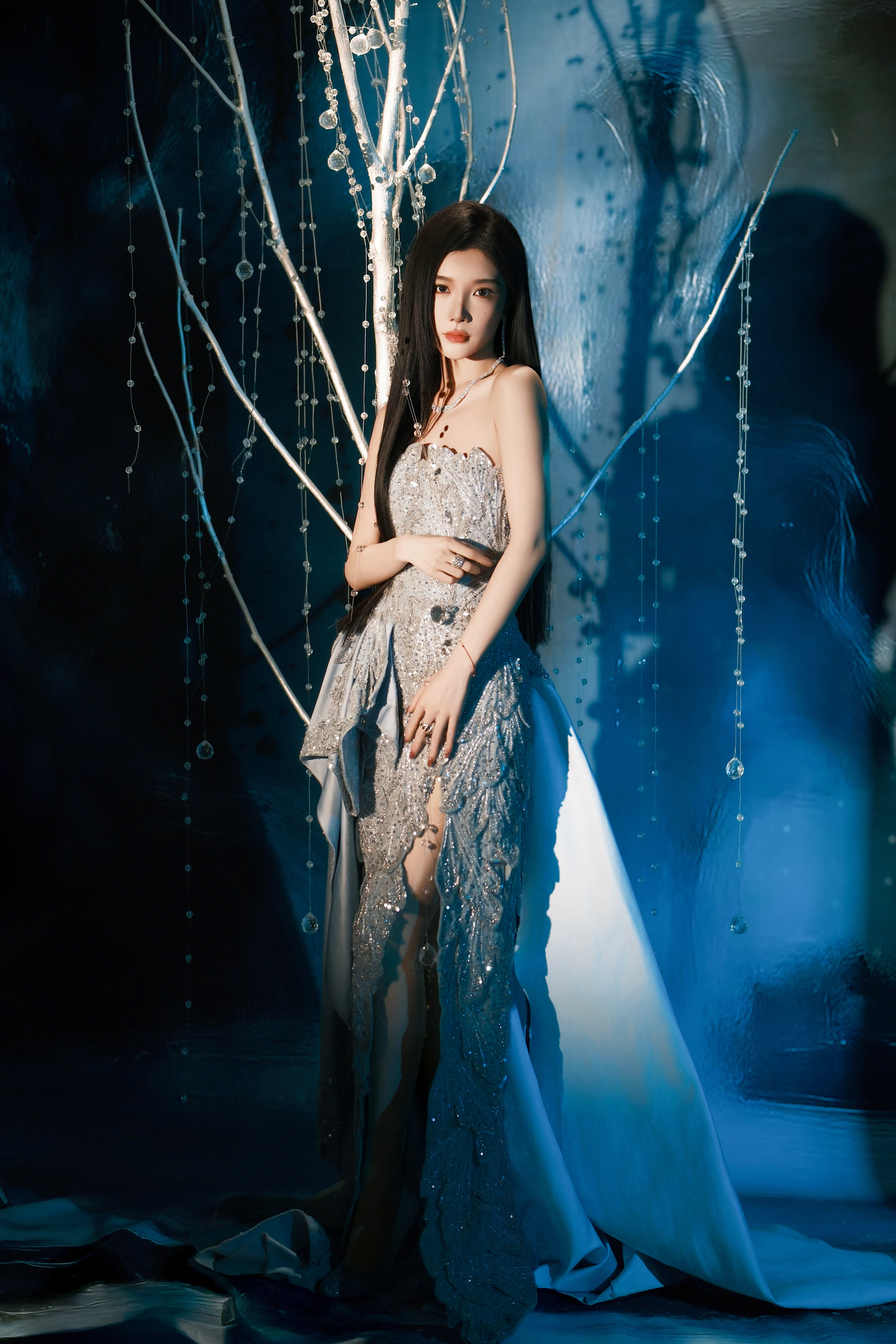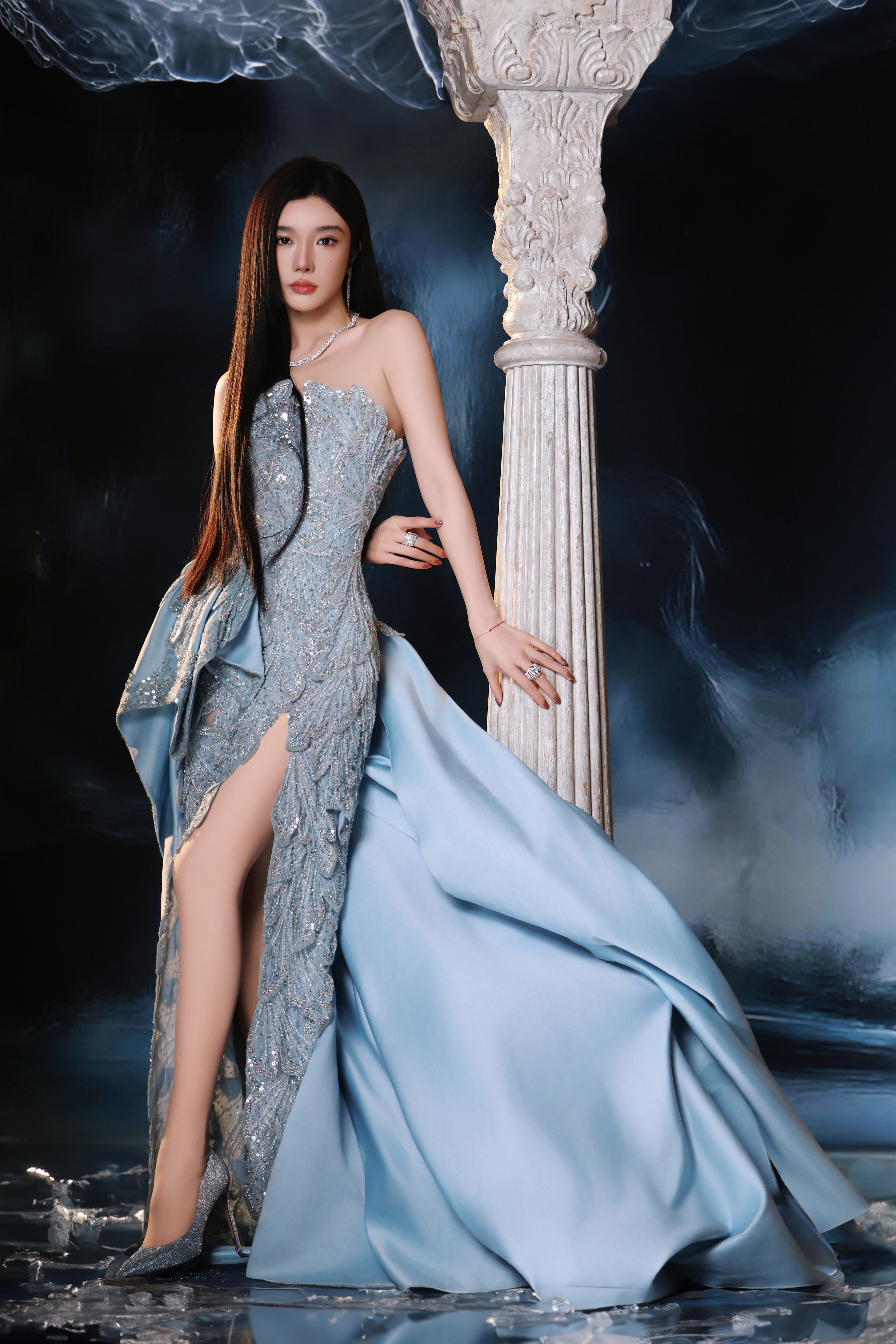 戴燕妮冰蓝色刺绣碎钻礼裙 戴燕妮身穿TonyWard 2025秋冬定制系列蓝色礼服亮相搜狐时尚盛典,重工亮片+高开叉设计加持整个人性感明媚,搭配黑长直造型整体高级干练气场全开😎搜狐时尚盛典