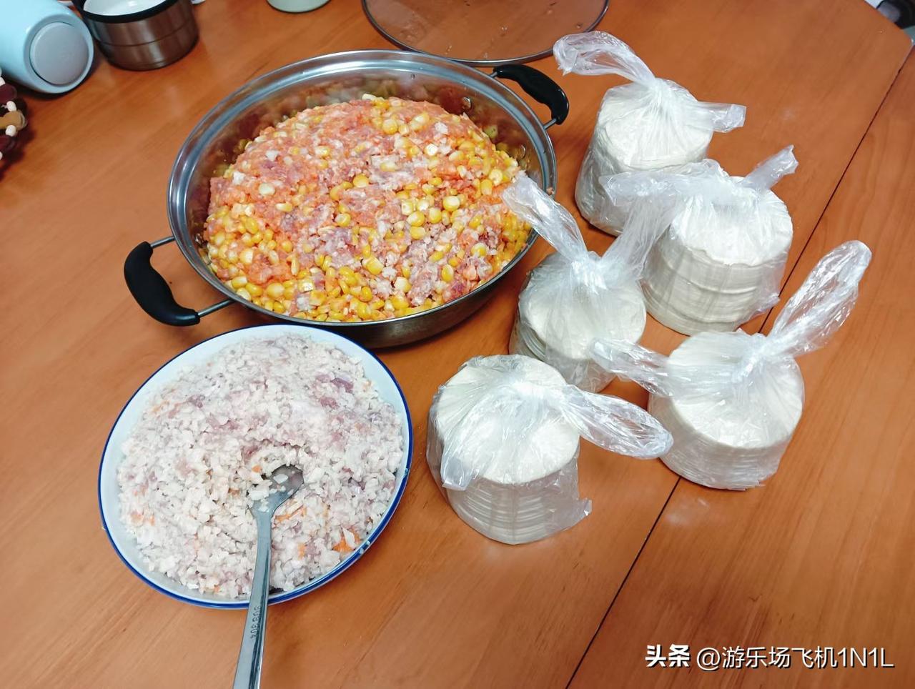 分享一张最近随手拍的照片今天去菜市场把包饺子的材料备齐了,回来就开始忙活拌馅儿,弄了两种口味,一种混了玉米和胡萝卜的肉馅儿,还有莲藕馅的,看着就鲜得很。等下包好的饺子直接分装冻冰箱,以后想吃的时候,不管是水煮还是煎,随手拿出来就做,省事儿又好吃,自己包的料足味正,比外面买的强多啦!