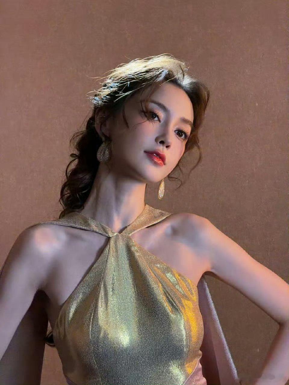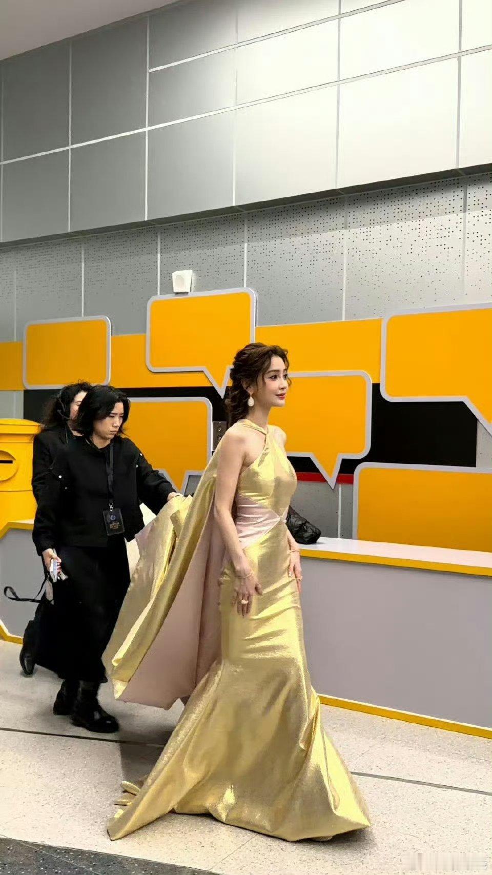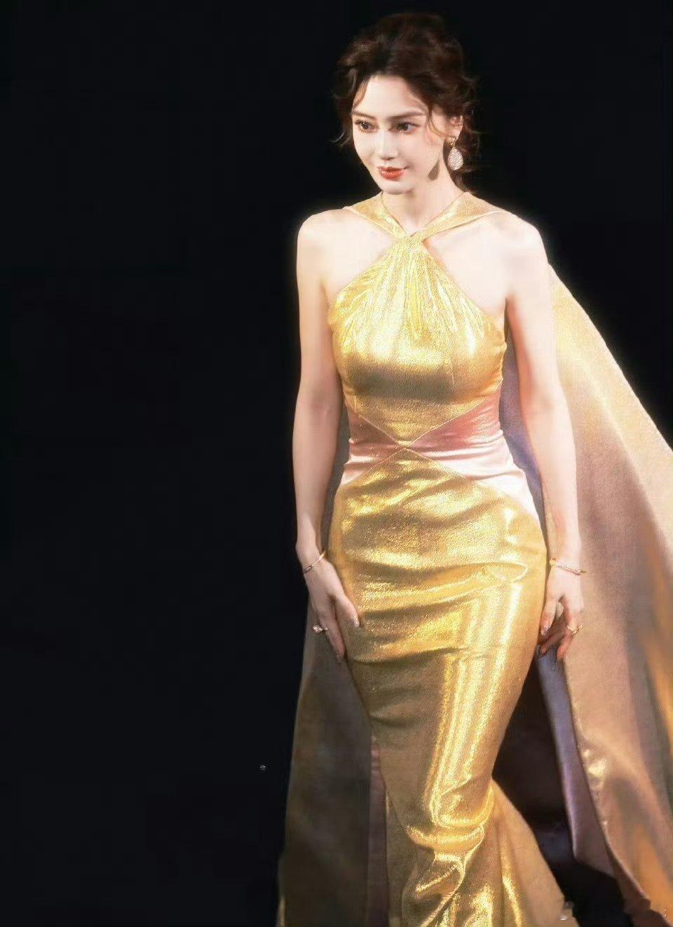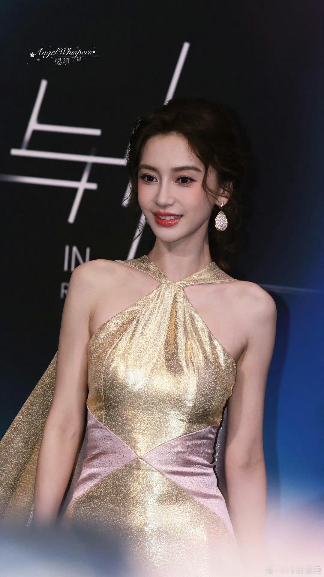 Angelababy时隔两年再战红毯,金粉裙好身材,还是美神~