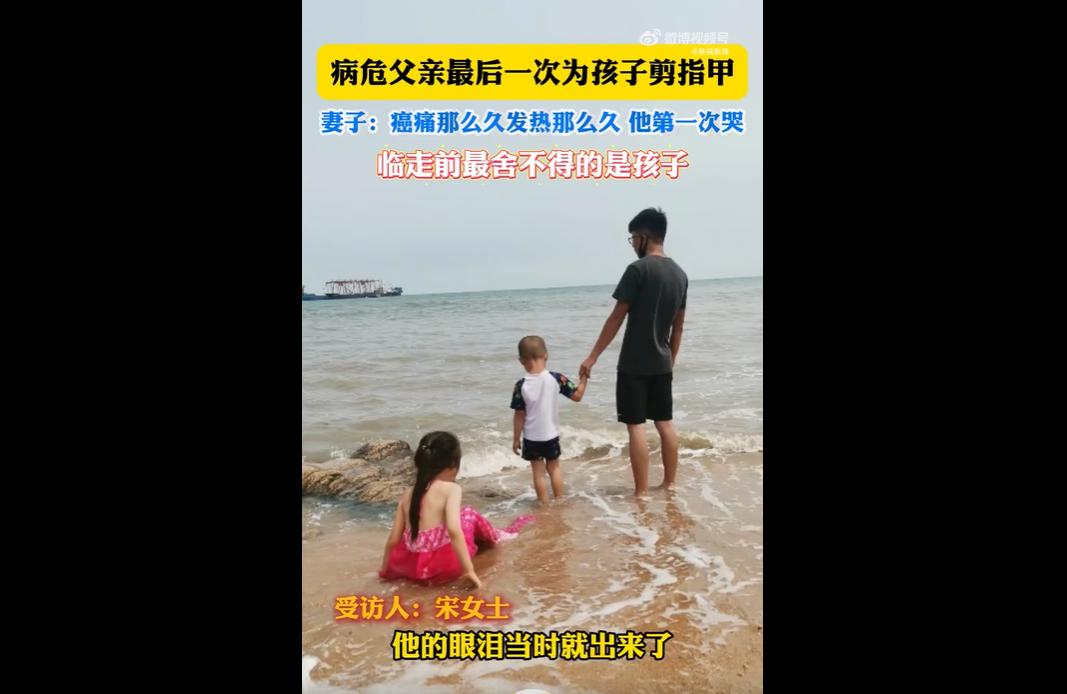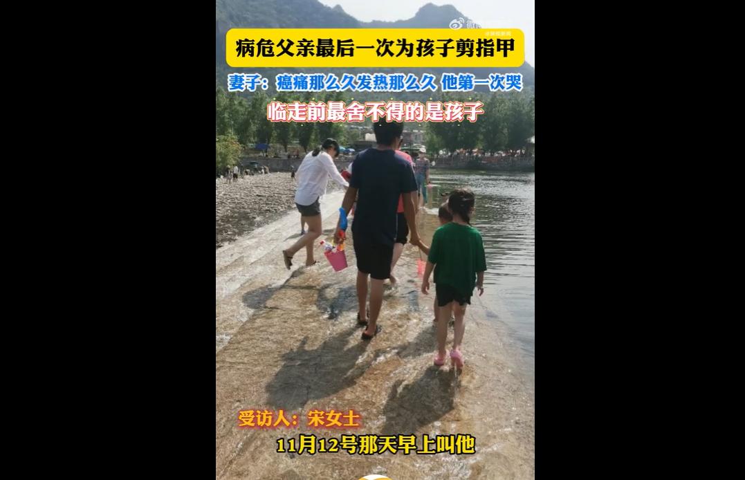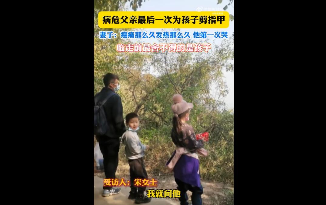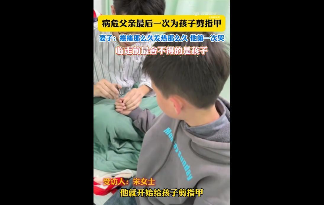 河北38岁男子因肝脓肿住院后病情恶化,被下病危通知书。 他见到两个孩子后落泪,提出最后一次为孩子剪指甲并叮嘱话语。 此前数月癌痛发热他从未哭,11月12日,在妻子呼唤时,他因舍不得孩子落泪,几分钟后离世,这一幕令无数人动容。 网友表示:希望以后孩子剪指甲想到的是父亲的爱,而不是剪指甲想到失去爸爸就哭。 也有网友说:这告别也太温柔了,满是放不下的牵挂,愿孩子能带着这份爱好好长大 。 38岁病危父亲俯身剪指甲的瞬间,把“父爱”两个字具象得戳心。 那些扛过数月癌痛发热都没掉的泪,见到孩子的那一刻决堤,不是脆弱,是拼尽最后力气的不舍与牵挂。 0.5厘米的指甲刀,剪的是指甲,更是他想再多照料孩子一程的心愿。 比起华丽的遗言,这日常到极致的动作更显深情。 他没法陪孩子长大,就用最细致的温柔,给孩子留下对抗风雨的铠甲。 这份“生活化的临终仪式”,既是他与孩子的情感闭环,也让妻子在悲痛中留住了最暖的念想。 网友的共情,恰恰是因为看懂了这份平凡又伟大的爱——父爱从不是什么惊天动地的壮举,就是藏在剪指甲、掖被角这些细碎的日常里。 愿他安息,也愿孩子们永远记得,父亲最后一次为他们剪指甲时的温柔,是一辈子都用不完的力量。