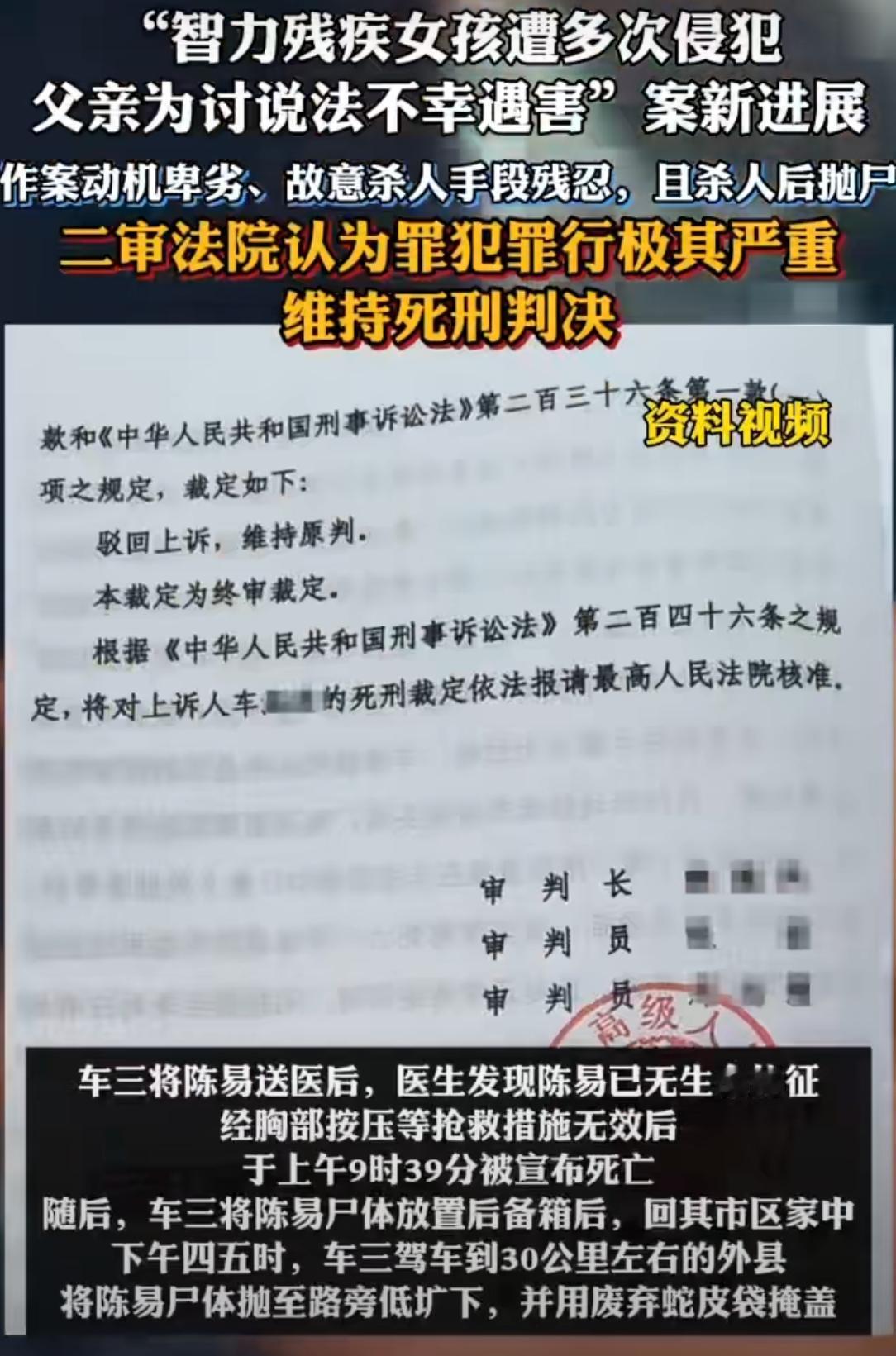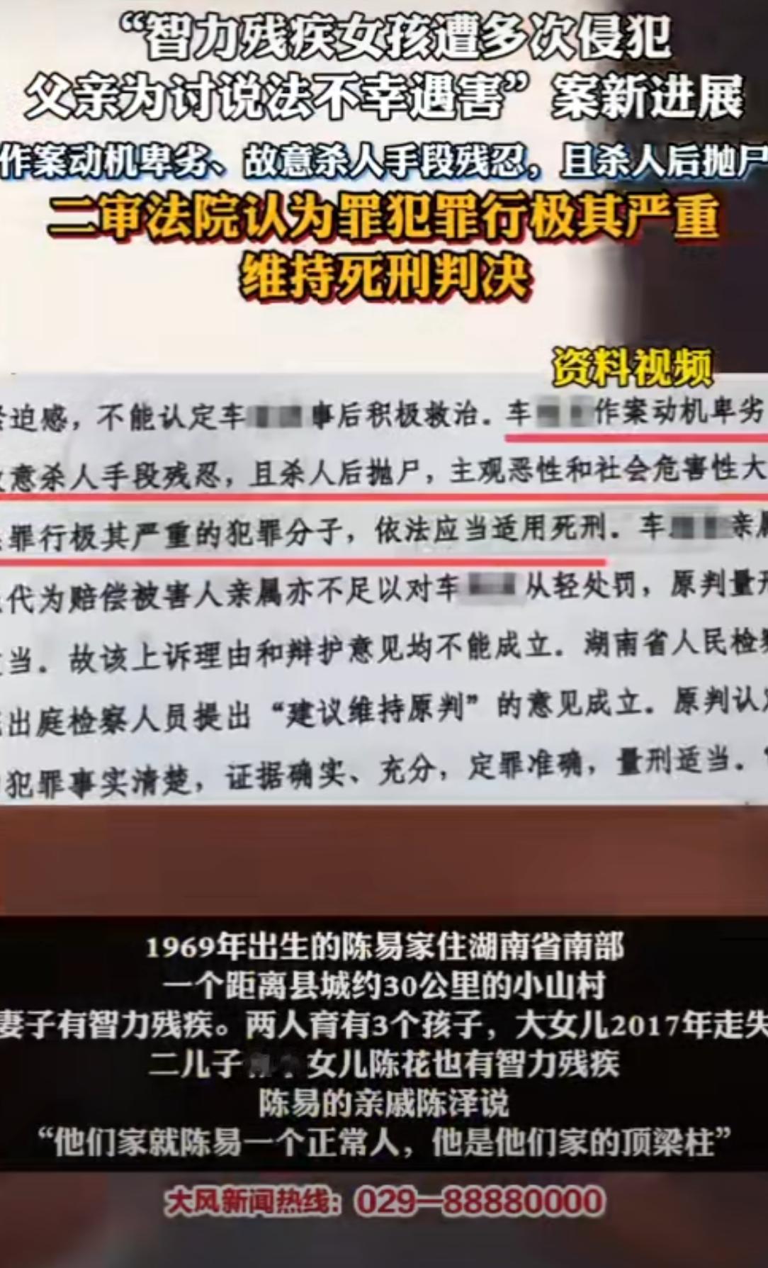 大快人心!二审维持死刑!湖南智障女孩遭侵害,父亲讨说法更是被残忍杀害,恶魔终伏法