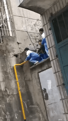 目测也就不到三米,我们小时候这种墙都是直接跳,上去的时候才会碰那个杆子