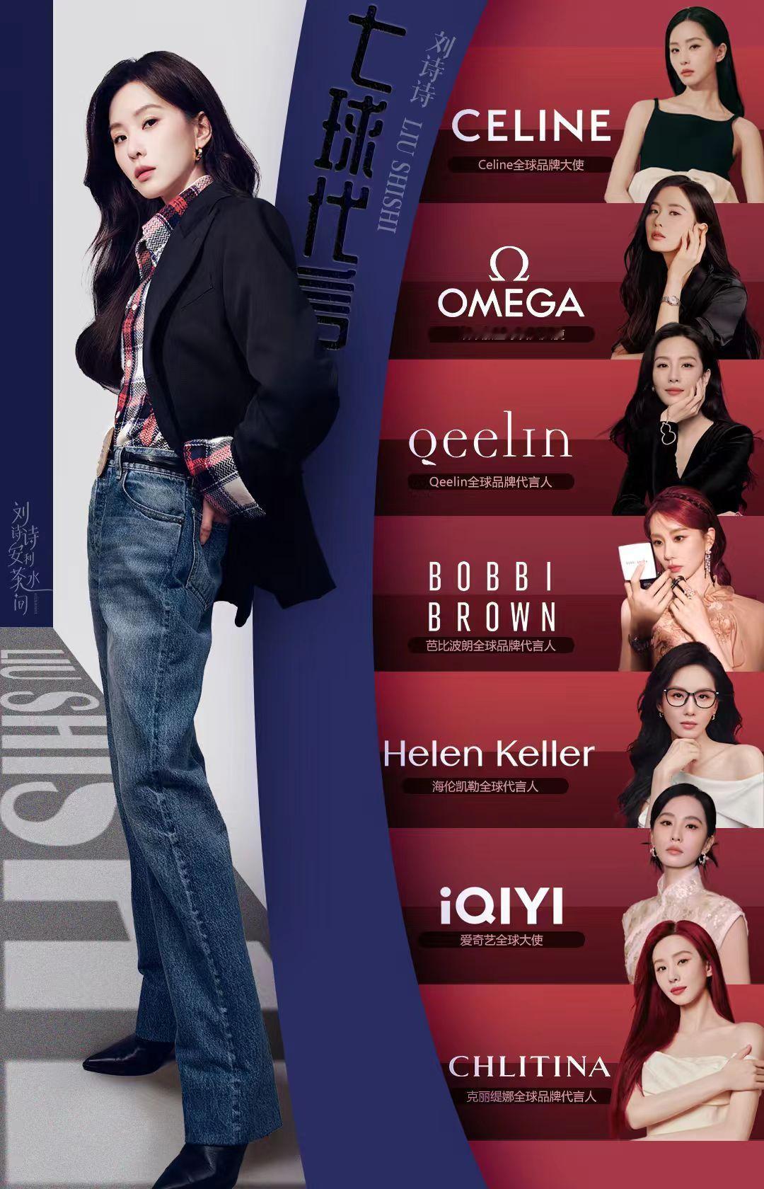 刘诗诗9个代言中7个全球代,量精质高,全球代比例高,奢代全都是全球,全球商业价值高刘诗诗