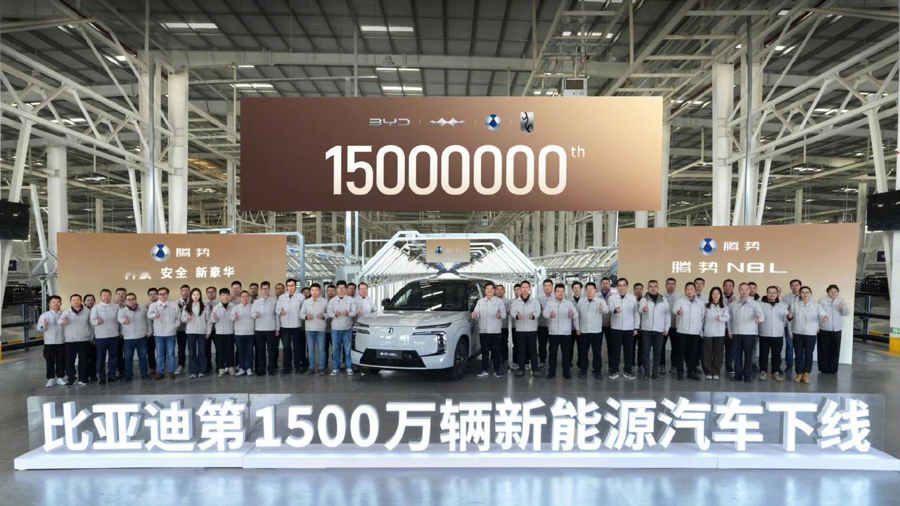 比亚迪第1,500万辆新能源汽车下线! 哇塞,这个记录确实非常的厉害,看样子比亚迪第2,000万辆新能源汽车很有可能在明年做到,也有可能是在后面做。 比亚迪的扩张速度真的是非常的快,放在10年前也不敢想象,会有这么迅速的销量增长。