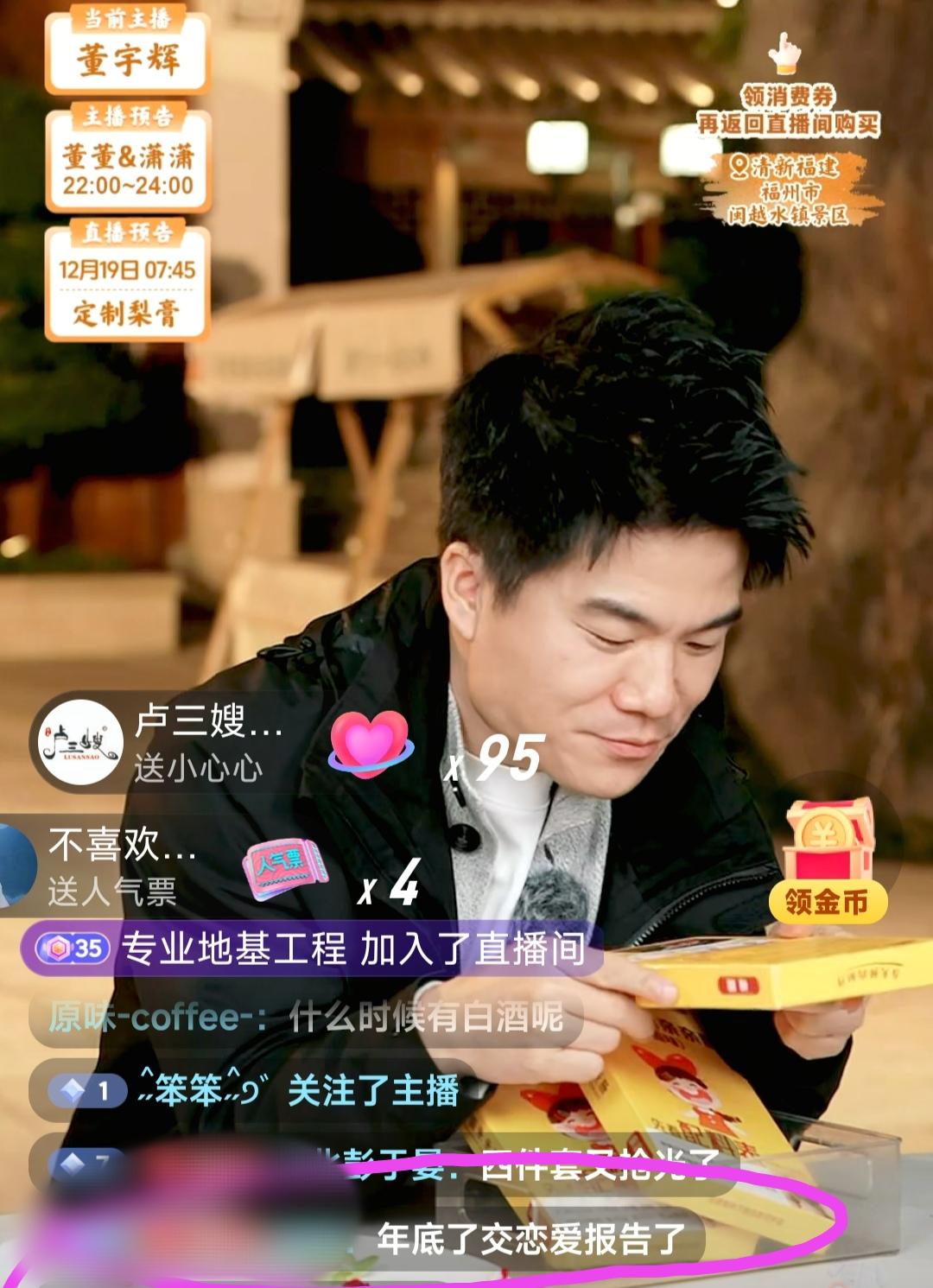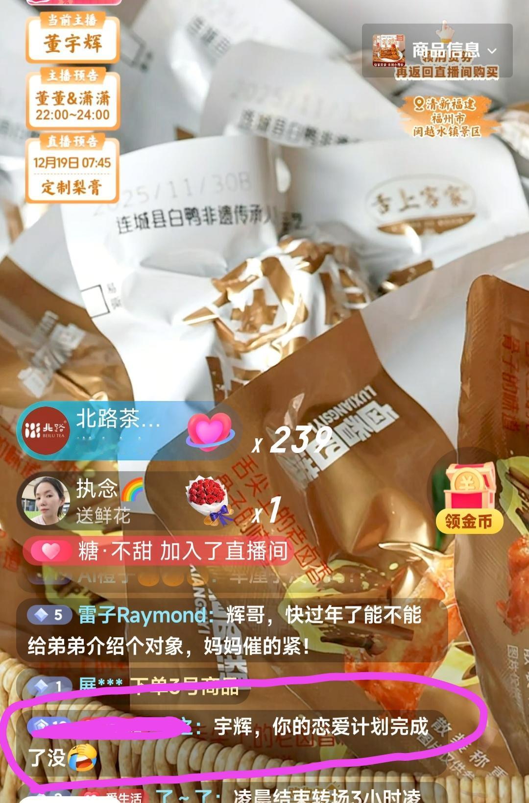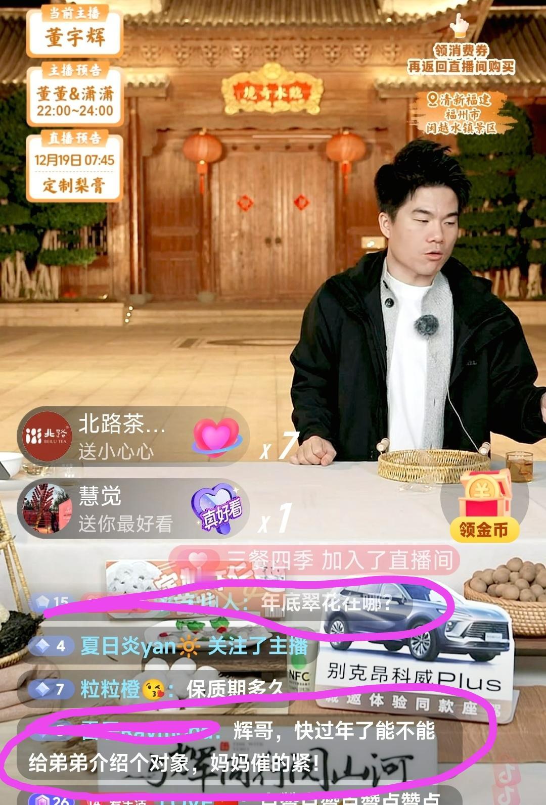 今晚评论区可是太热闹了,不知是谁起了头,大家把话题就转移到翠花身上了,都在说:“宇辉,翠花在哪?” “宇辉?快年底了,把你恋爱报告交一下。” “宇辉,你的恋爱计划完成了没?” “宇辉,你上次和蝴蝶妈妈发誓说要好好恋爱的。” 还有人说:“宇辉,你到底什么时候生宝宝?” “辉哥,快过年了,能不能给弟弟介绍个对象?妈妈催的紧。” 后来发现有人说:“定制东西什么都抢不到,攻击你找翠花。” 更有人遵循爱就要大胆的说出来,大胆的说:“宇辉,我要嫁给你。” …… 大家都如此操作,真的把宇辉吓着了,宇辉说:“赶快把他拉黑,他是我妈的小号,一定是,不能让他有第二次说话的机会。” 就说大家是真的把宇辉当成家人来操心啦,这翠花还没有着落,就着急生宝宝的事了。只是宇辉真的是压力山大呀。被家里行父母催婚还不算,这被广大的网友,几千万的丈母娘同时催婚,谁能受得了呀?还是别给宇辉那么大的压力吧! 董宇辉 与辉同行