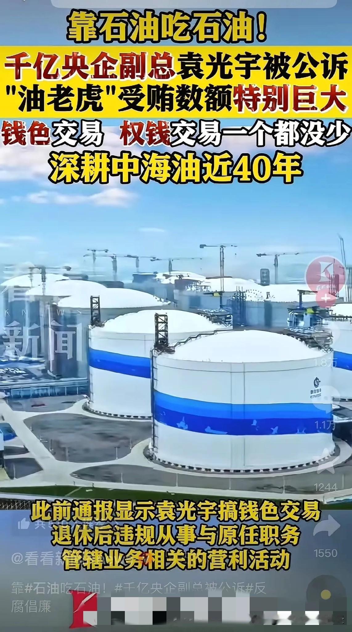 这个才是大虎! 怪不得油价只有涨没有跌了! 靠石油吃石油!千亿央企副总袁光宇被公诉油老虎受贿数额特别巨大钱色交易,权钱交易一个都没少,竟然深耕中海油近40年,居然还没有人发现这个漏洞,简直让人不可思议! 这袁光宇可不是临时起意的贪官,从1982年大学毕业进入中海油,从渤海钻井平台的领班一步步爬到集团副总,40年的职场生涯几乎贯穿了能源行业的黄金发展期。他手里攥过钻井项目审批权,管过油田服务公司上市,还主导过渤海油田3000万吨稳产这样的国家重点工程,一人身兼渤海石油管理局局长、天津分公司总经理等多个要职,权力几乎覆盖了油气开采、项目建设到销售的全链条。这样的权力金字塔,本该是守护国家能源安全的屏障,却被他变成了中饱私囊的工具,非法收受的财物数额大到需要用特别巨大来定义,钱色交易、权钱交易样样不落,退休五年都没能逃脱法网。 能源领域从来都是腐败高发地,不是没有原因的。权力集中、资金密集、资源垄断的特点,让一些身居要职的人有了可乘之机。2025年,石油化工领域有29人被查,国家管网的唐伏平、中海油的董孝利,一个个油老虎接连落马,他们和袁光宇一样,多在行业内深耕数十年,靠着职务便利在项目审批、设备采购、油品销售等环节搞利益输送。这些腐败分子拿走的看似是国有资产,最终都会变成隐性成本,摊到每个车主的加油枪里为啥有时国际油价跌了,国内油价却纹丝不动?为啥外资加油站能比三桶油便宜一块多还能盈利?答案里藏着的,就是这些被贪腐侵蚀的灰色空间。 更值得警惕的是,这些大老虎的落马,暴露了过去监管体系的短板。袁光宇深耕40年才东窗事发,说明上级监督远、同级监督软的问题真实存在。好在现在的反腐早已不是头痛医头,二十届中央纪委四次全会明确要抓好能源领域系统整治,华电、国家电网等央企都在搭建数智监督平台,把监督嵌入项目审批、招标采购等核心流程,从事后问责转向事前预警。 老百姓对油价的敏感,本质上是对公平的期待。能源央企承载着国家能源安全的重任,不是少数人的提款机。袁光宇们的落马,既是对贪腐分子的震慑,也是在给能源行业刮骨去毒。只有把权力关进制度的笼子,让每一笔资金、每一个项目都在阳光下运行,才能真正堵住漏洞,让油价回归合理,让国有资产真正为民所用。