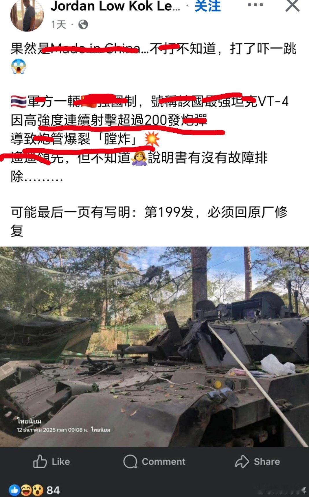 坦克當作自走砲來使用,連發200砲,竟然只有一輛炸膛,砲管質素非常好。泰国彻夜播放鬼叫声恐吓柬村民