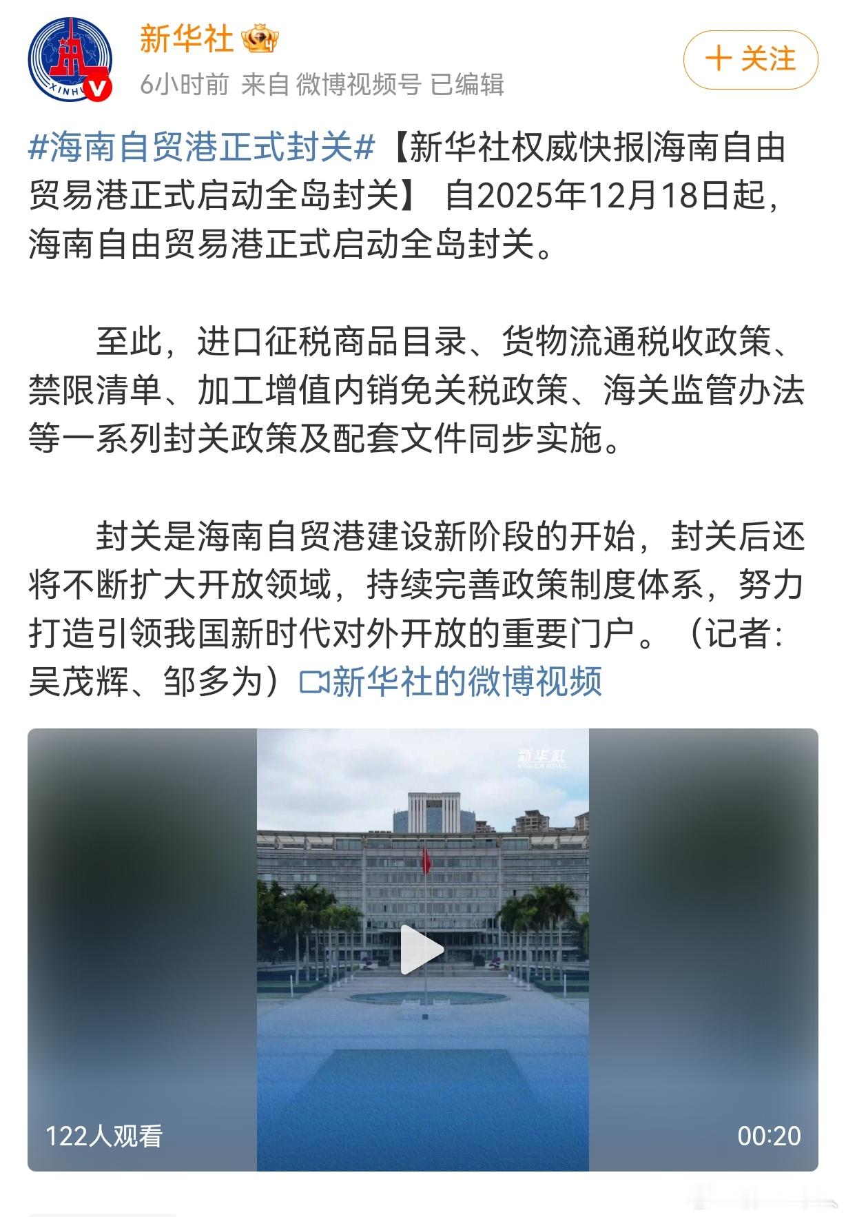 海南自贸港正式封关:自2025年12月18日起,海南自由贸易港正式启动全岛封关。封关是第一步,下一步是如何引流,特别引入国际财务流。建议有三种办法:第一是除了已经允许的免签入境的外,还要给发展中国家一些认证VIP搞免签,让他们放心到中国存钱,关键时刻可以跑海南。第二是海南的资金要自由,可以搞两个帐,外国人走第二套账,他们就像在香港一样的资金自由。第三是要丰富医院、学校和旅游,让人来了呆得住。