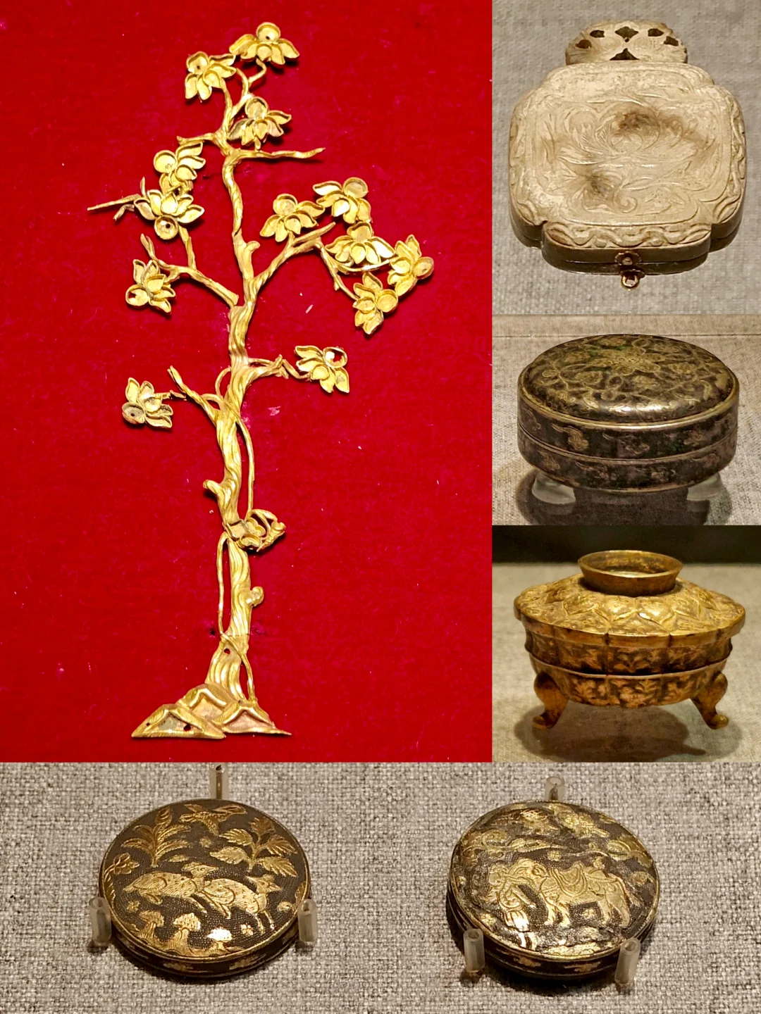 鎏金花草鹿纹银盒