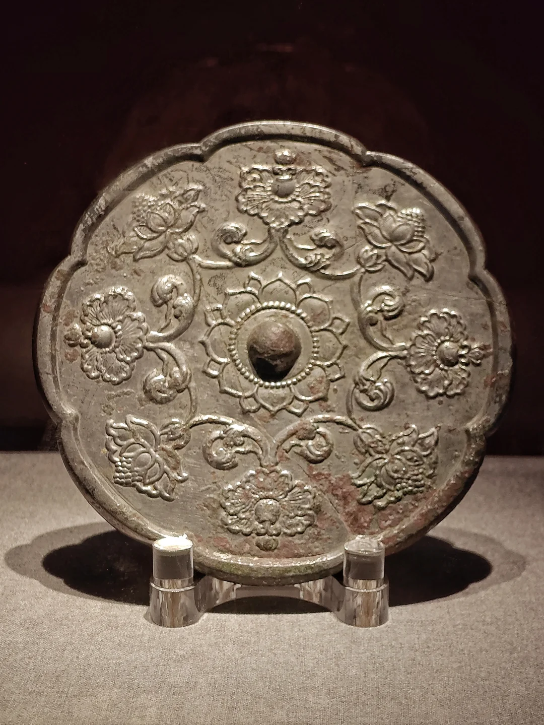 牡丹纹银镜