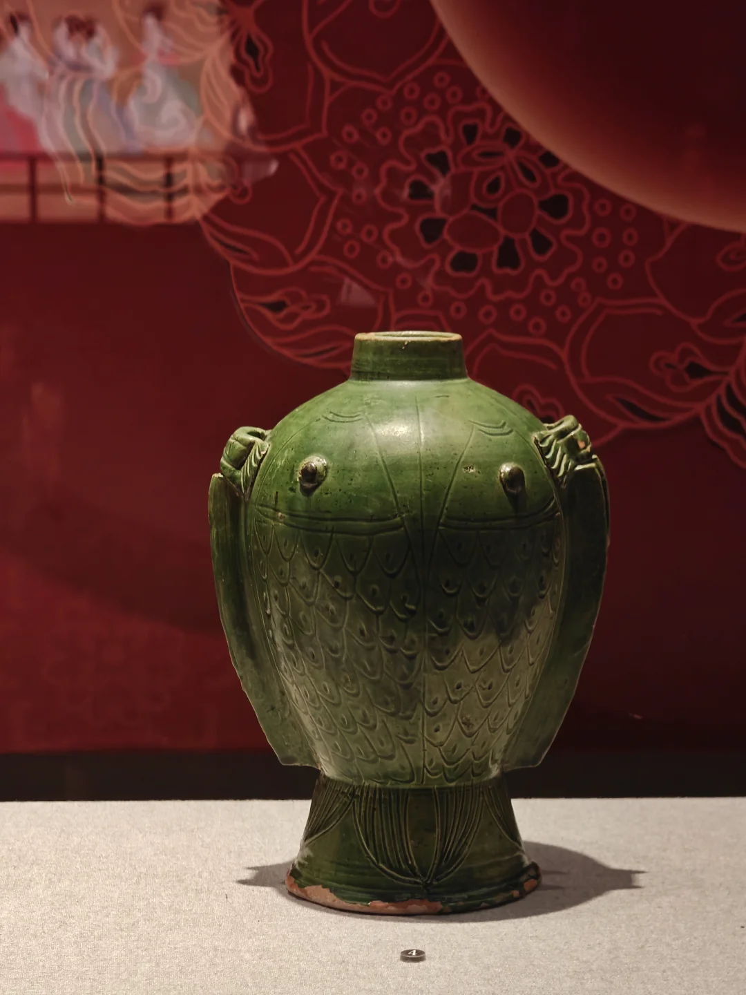 绿釉双鱼穿带瓶
