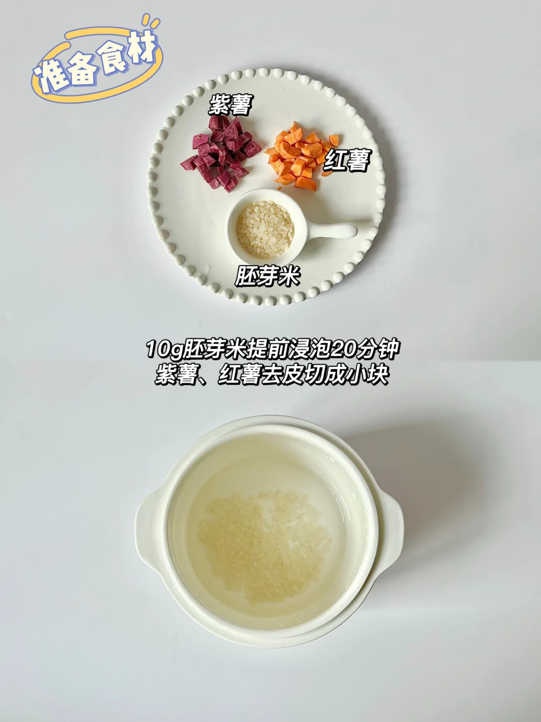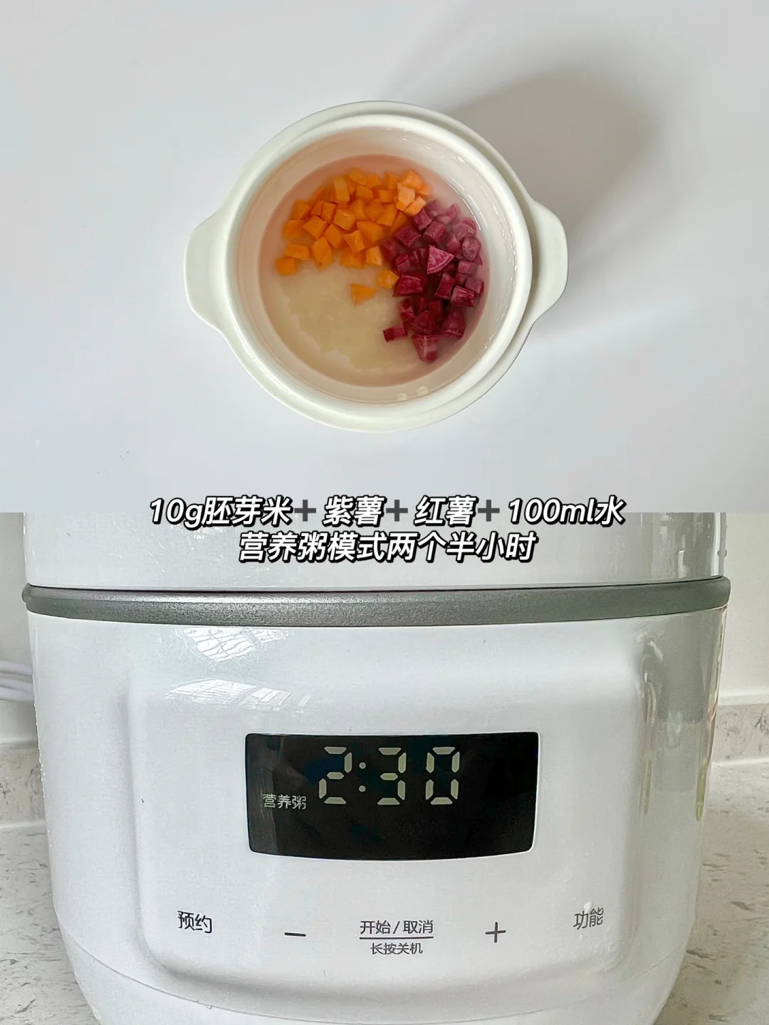 📝:10g胚芽米➕100ml水➕紫薯➕红薯
