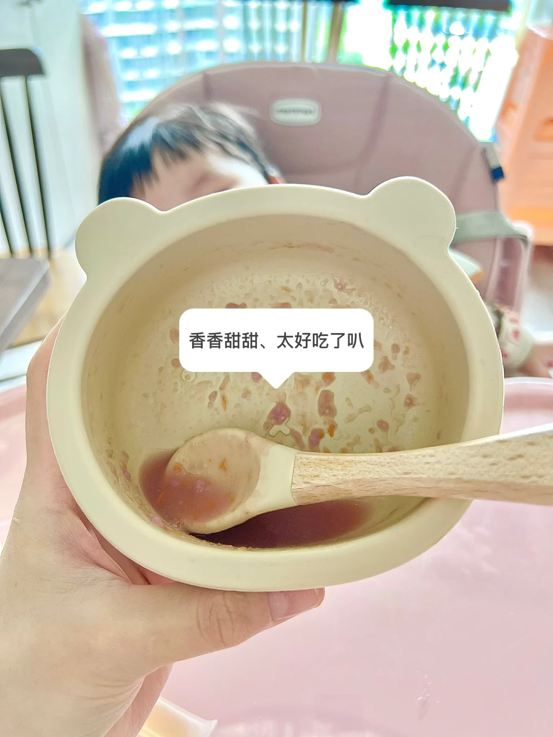 🥣柒柒今天很棒呀,全部吃光光,吃完喝了30ml水就开始拿着水杯晃来晃去,玩起来了哈哈[失望R]