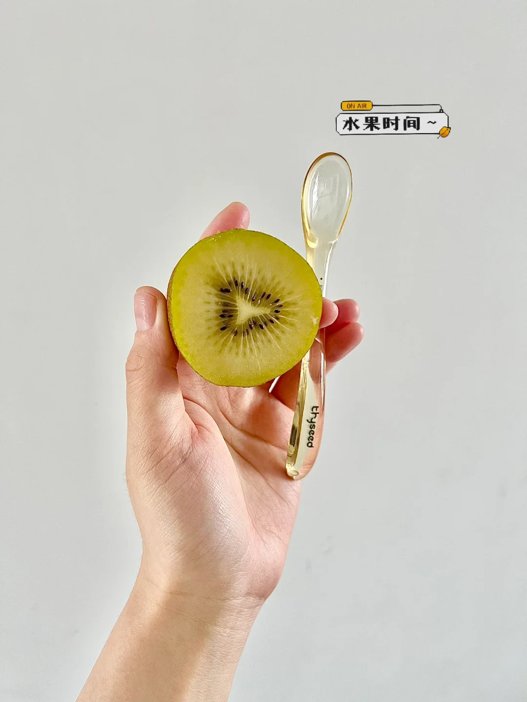 下午水果猕猴桃🥝,用勺子挖着吃,猕猴桃是柒柒爷爷买来的嘿嘿,那就再吃几天猕猴桃吧~