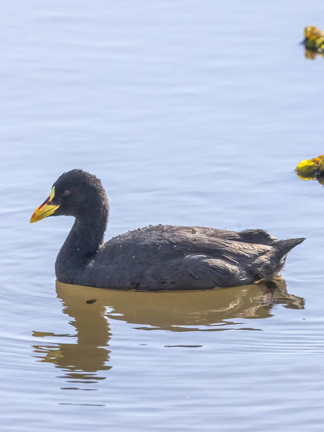 因为这不是白骨顶,哈哈,是亲戚 黄腿骨顶。 黄腿骨顶,鹤形目秧鸡科骨顶属。我称之为南美的白骨顶 aka 骨顶鸡,哈哈。 他们和我们常见的白骨顶很像,但是仔细看有特征性的黄色额甲,以及红带分隔的喙。另外它们和白骨顶的生境和生活习性也相似。 拍摄于阿根廷布宜。