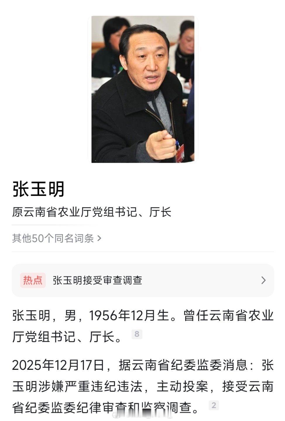 原云南省农业厅党组书记、厅长张玉明(已退休)被查!