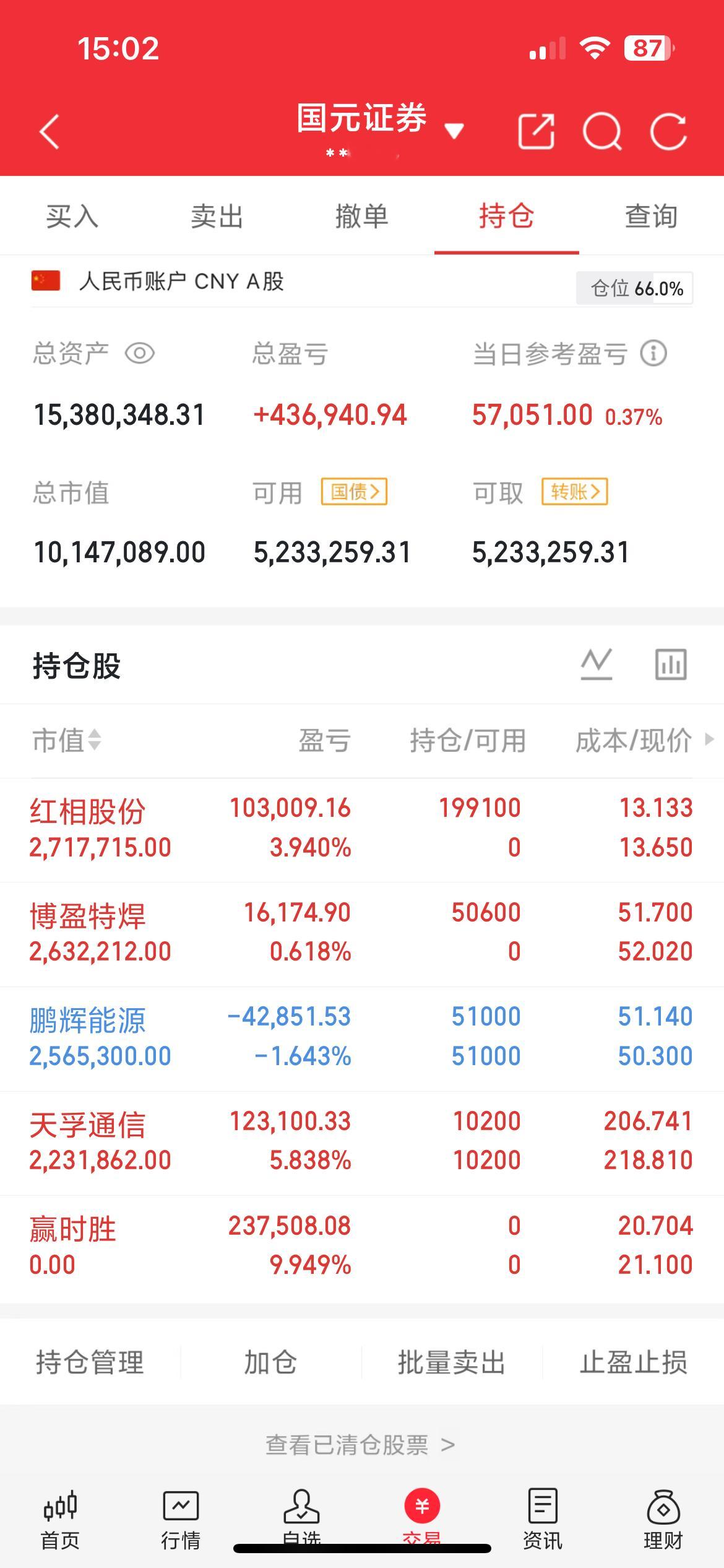 北北实盘日志:稳扎稳打,步步为赢(12.18)今日操作新仓介入:博盈特焊——红相股份——技术面突破,趋势向好,择机入场。 坚定持有:鹏辉能源、天孚通信—逻辑未变,静待花开。 果断止盈:赢时胜市场如战场,每一步都需谨慎。今日按计划调仓,既有新锐力量的加入,也有老战友的坚守,更不忘及时锁定利润。投资没有百分百的胜率,但纪律和执行力是长期生存的关键。 本记录仅为个人操作日志,绝非投资建议!股市风云变幻,请务必独立思考,理性决策。跟风有风险,盈亏需自负。 感谢一路相伴的股友们!点赞沾喜气,评论“888”共赴财富路!咱们评论区见,一起交流心得~ 股票实盘
