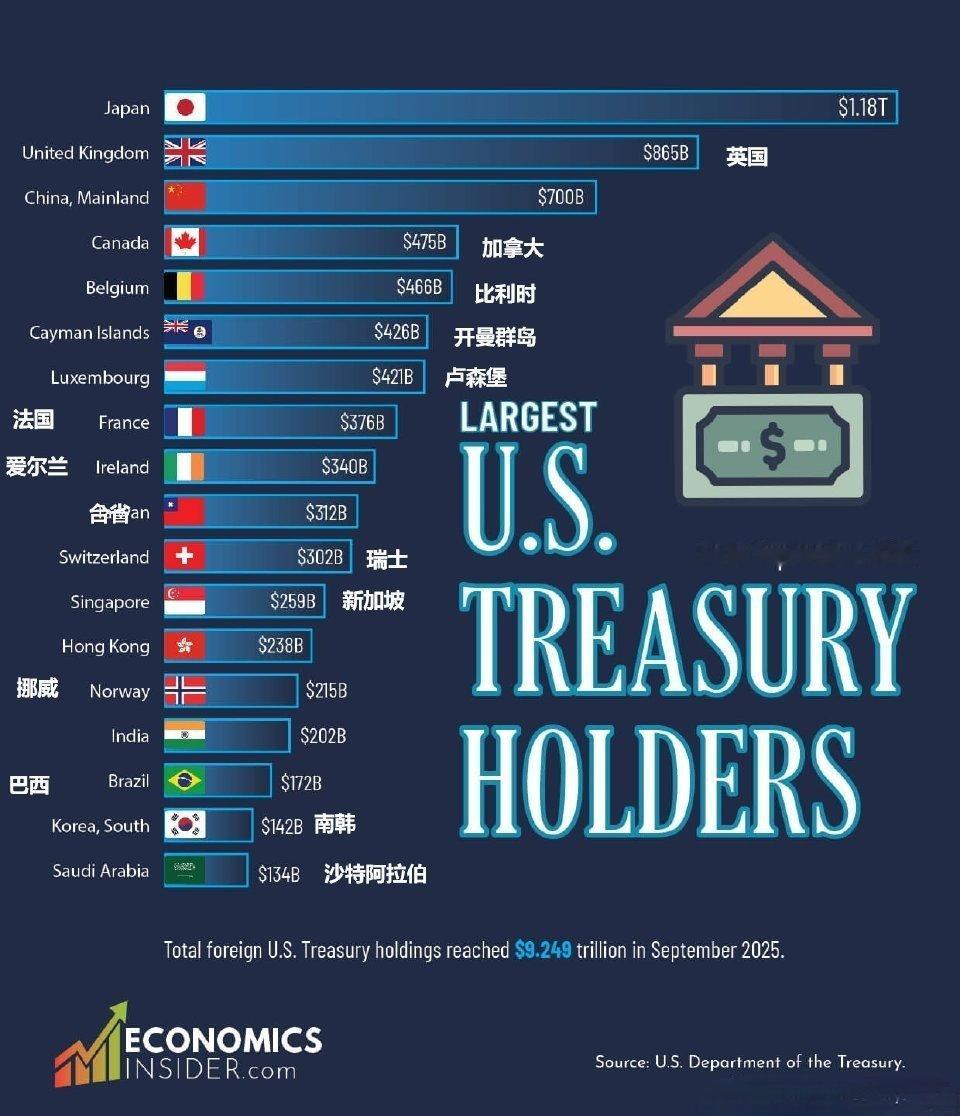 截止9月底,中国大陆持有的美国国债还有7005亿美元。预计到明年,中国大陆持有的美债可能就要跟加拿大等国差不多。另外,台湾省还有3120亿美元的美债,如果我们梧桐,这近万亿美元会不会被……热点观点