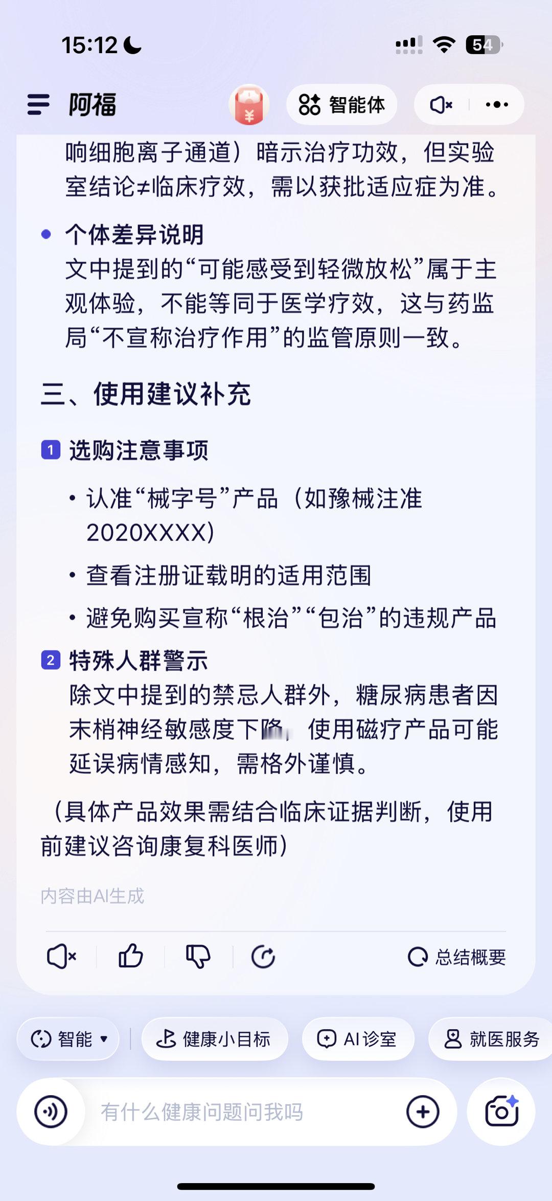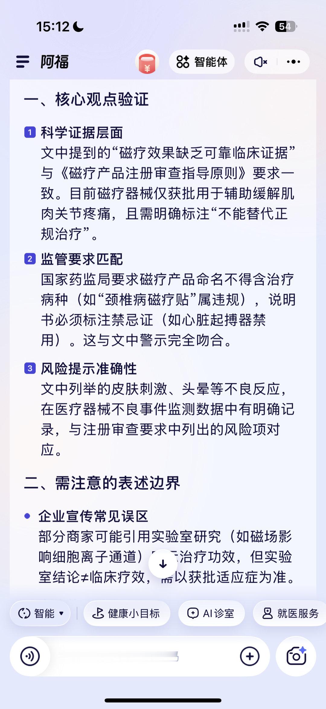 这几年最头疼的就是,越来越多的针对老年人的各种骗局,比如天价床垫,比如各种奇奇怪怪的保健品。还好现在有蚂蚁阿福能把道理给爸妈讲清楚了。像有些文章里的磁疗床垫等等产品,一直很怕爸爸妈妈被这种乱七八糟的东西骗钱,再比如一些乱七八糟的保健品,现在只要把问题丢给蚂蚁阿福就好了。实在是太省心了。还有平时爸爸妈妈高血压什么的,也可以和阿福问一些饮食和生活上的注意事项。真的很靠谱谁懂啊总之像我这样工作忙,平时不在爸妈身边的,真的很希望他们可以照顾好自己。蚂蚁阿福对他们来说,一问一答的形式就不怕他们弄不明白,还可以随时随地提问,得到专业的健康解答啦~家族群爆款文章先给阿福看一眼