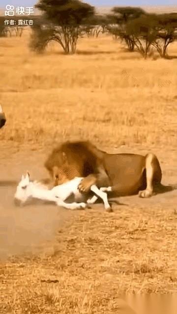 都说狮子是草原之王。 今天,它碰上王炸了。 我从没想过,一匹马能把一头雄狮踩在蹄