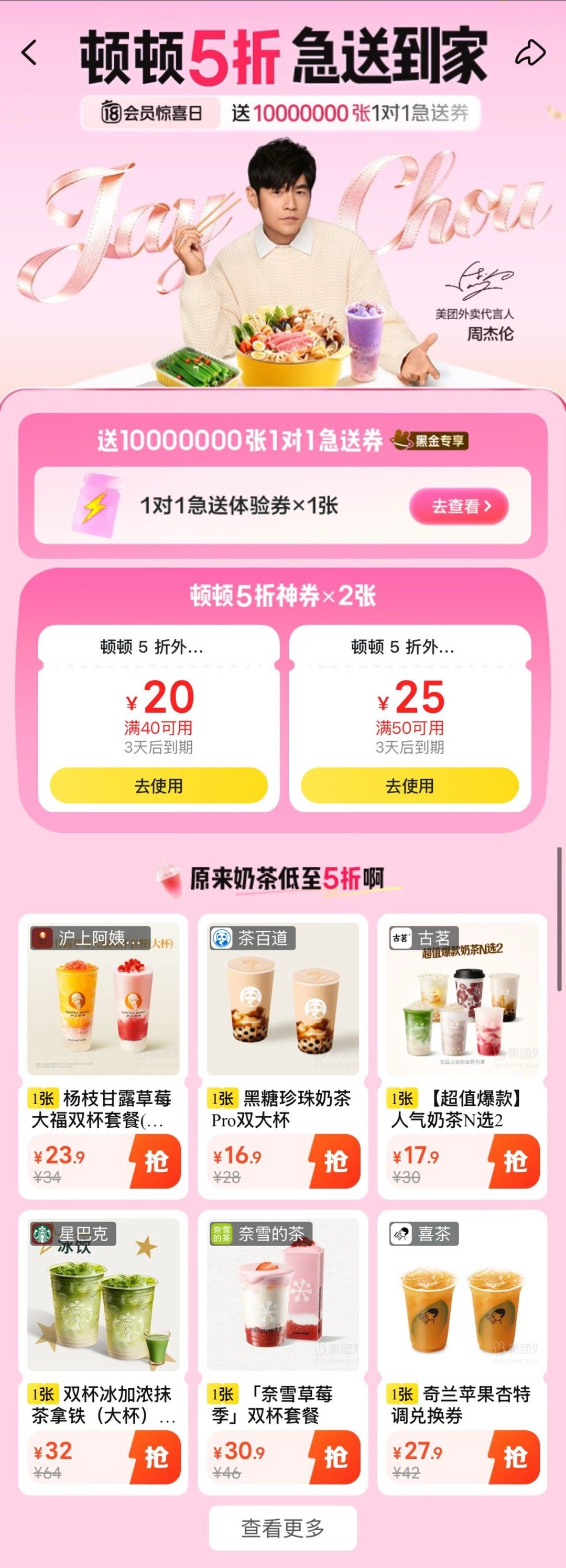 周杰伦在周杰伦模仿大赛获得第二名 模仿大赛拿第二的周董,在美团外卖送上了真福利,搜【周杰伦】进会场领券,KV和站内落地页里藏着超多惊喜。周杰伦代言美团外卖
