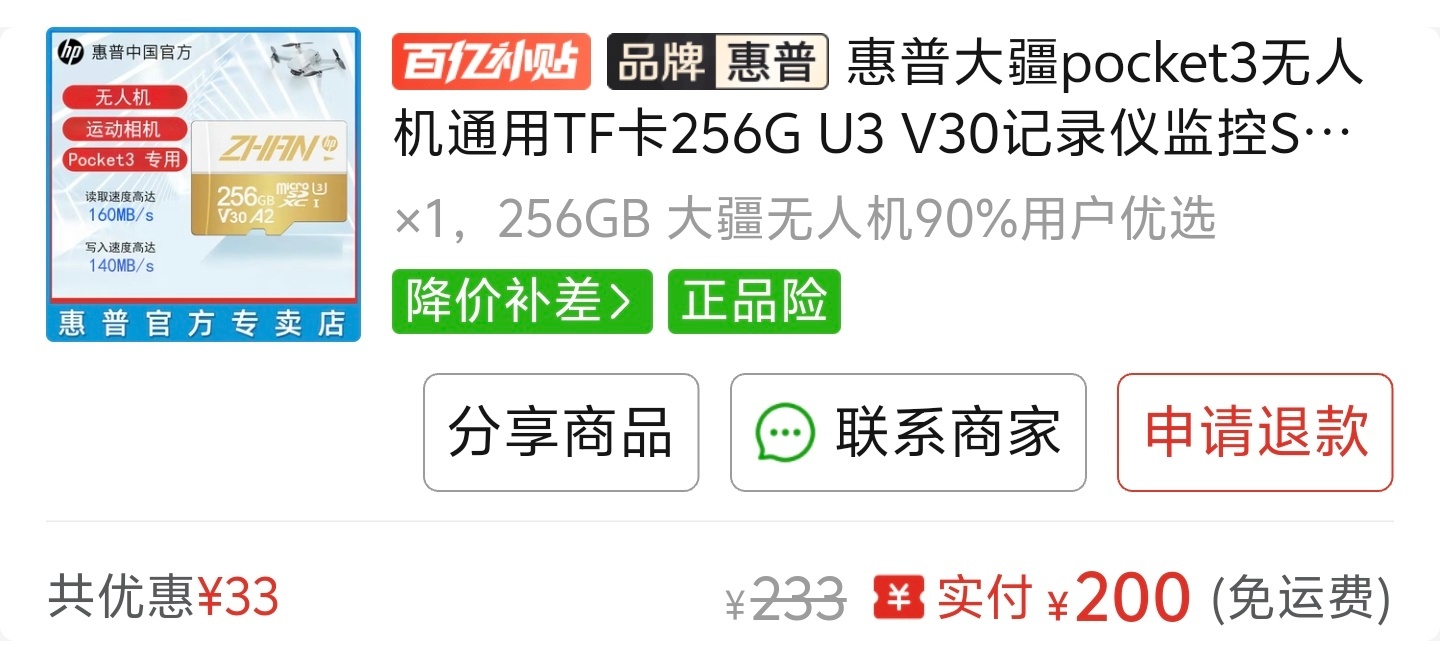 上一次买内存卡我记得256GB也就60~80块钱,现在找到最便宜都要200了,还是没咋用过的惠普,希望能靠谱!