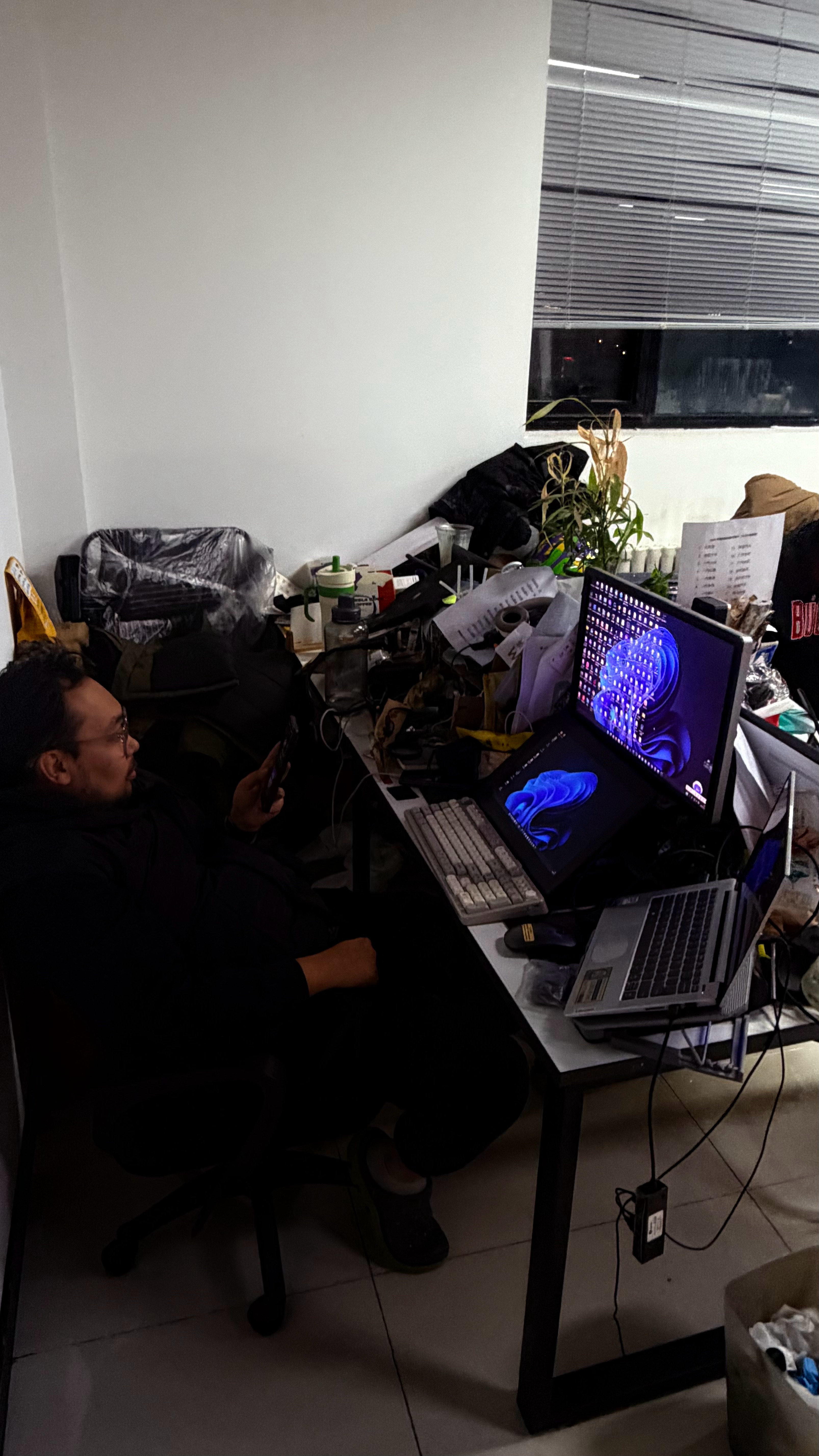 编辑老师的桌子!满满当当!!三块屏幕!两部手机!!太够劲了!!