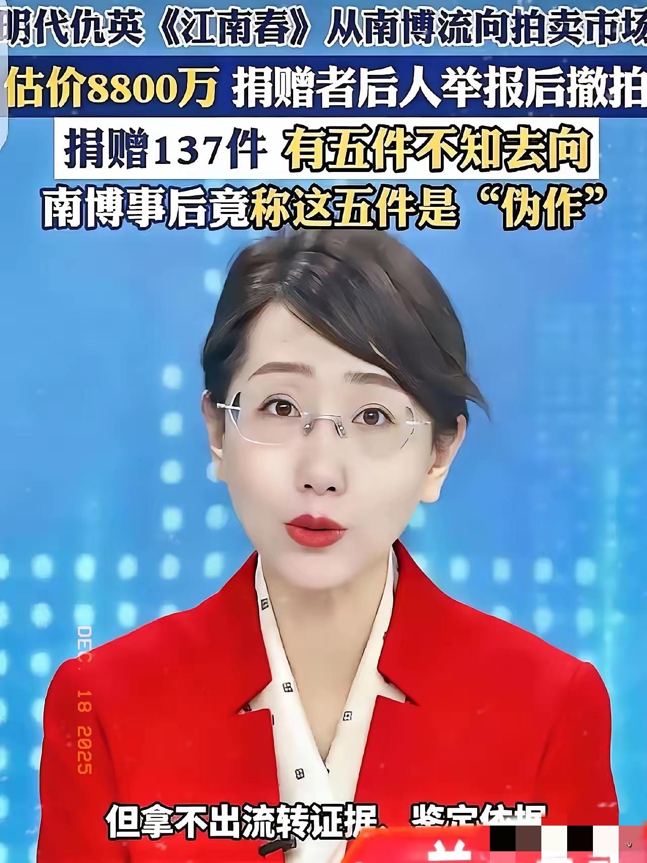 南京博物馆这下真的尴尬到家了!60多年前收下的捐赠文物,转头就被曝估价8800万准备拍卖,捐赠者后人找上门,更发现另外4件文物也凭空消失。 博物馆一句“是伪作早处置了”就想搪塞,可鉴定材料打马赛克,文物去向只字不提,反观人家手里60多年前的捐赠票据、奖状样样齐全。文物捐赠捐的是沉甸甸的家国情怀,不是让博物馆暗箱操作的私货。《博物馆藏品管理办法》白纸黑字要求处置透明,连原捐赠人都不通知,这不是管理漏洞,是赤裸裸践踏信任。 失去信任容易,重建信任难。博物馆的公信力从来不是靠嘴说,而是靠件件文物的清晰去向撑起来的。 你觉得博物馆该用什么方式查清文物去向,才能重新赢回大众的信任?
