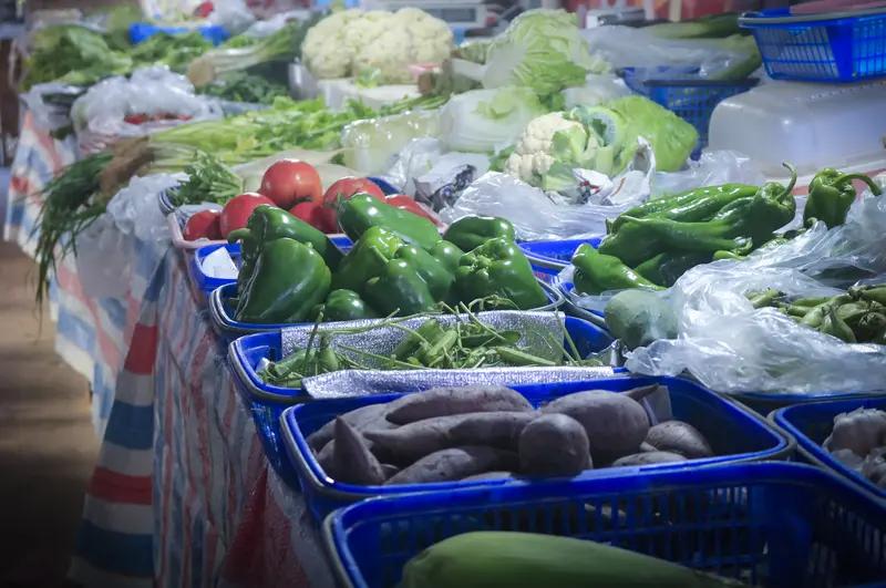 我的菜市场记录 国庆假期逛郑州市金水区纬四路农贸市场,简直惊喜满满。大门两侧国旗飘扬,节日氛围拉满。一进去就看到“菜市场里的博物馆”展板,一场独特展览正在上演。 菜摊上,“莲鹤方壶”挨着彩椒番茄,“贾湖骨笛”横卧在茄子菌菇间,“绿釉立姿陶狗”被蔬菜环绕,“青铜神兽”在葱姜蒜中“吐舌”。原本买菜的市民纷纷拍照打卡,年轻人穿梭找展品还不忘买袋蔬果,小女孩踮着脚看展签了解妇好故事,摊主们也兴奋地互相“串门”。这种让文物接地气融入生活的形式超棒,带孩子来感受烟火气的同时还能学知识!