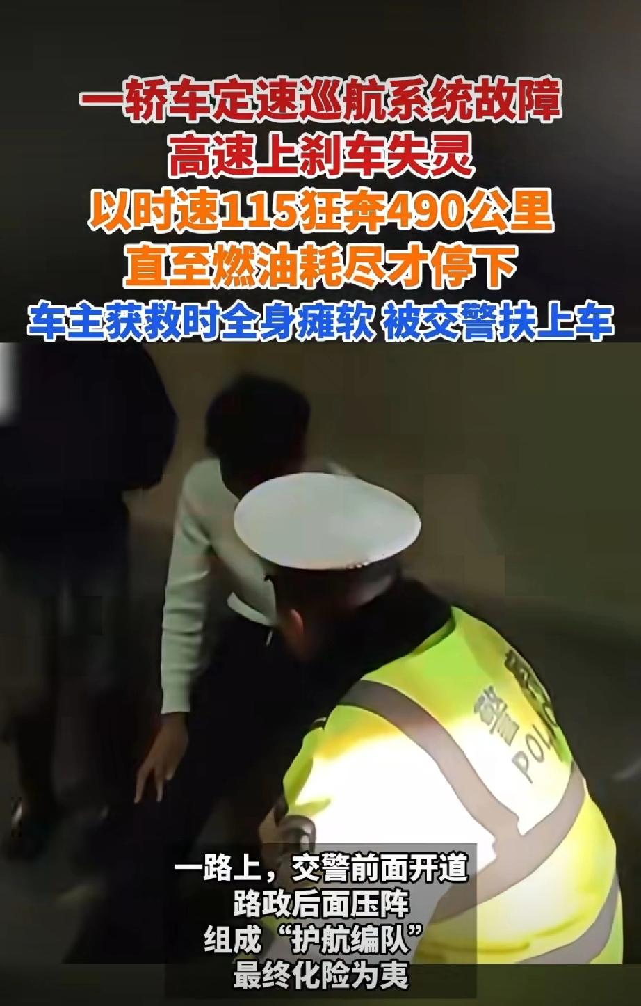跑了490公里,车速115,刹车没用,油表见底才停下——这不是电影,是12月17日晚G75高速上的真实噩梦。 12月17日晚,G75兰海高速。一辆甘A牌小轿车,载着一对二十来岁的年轻男女,从兰州回临康。司机马某设定了115公里/小时的定速巡航,然后发现完了——定速失速,刹车失灵,车子像脱缰野马,只能往前冲。 晚上7点25分,定西交警接到求助,立刻启动应急预案。警灯闪烁,警车开到失控车前方,像一把利剑劈开车流。路政车在后面死死压住阵脚,不让其他车辆靠近。沿途收费站入口全部封闭,一条生命通道被硬生生开辟出来。 这不是一个部门的战斗,是跨域接力。定西、陇南,交警路政无缝衔接,信息一秒不敢耽搁。四个多小时,490公里,每一秒都是悬崖上走钢丝。 晚上10点02分,油箱空了。车子在陇南武罐段强家湾隧道缓缓停下。年轻人吓得瑟瑟发抖,话都说不出来。确认人没伤、车没撞,工作人员才松了口气,把两人送到陇南市区。车子拖走,路通了,但人心还没平复。 这事听着像大片,细想却后背发凉。一边要为交警路政点赞,寒夜里四个小时的守护,是真拼了命。 但另一边,车企得好好想想,电子系统越来越智能,安全冗余做足了吗?刹车和巡航同时失灵,bug得查清楚。 对车主来说,别只会踩油门,应急知识学了吗?平时保养是不是只换机油,关键系统检查过没?高速上跑,命是自己的。救援人员能护你一次,护不了一辈子。安全这事儿,谁也别心存侥幸。