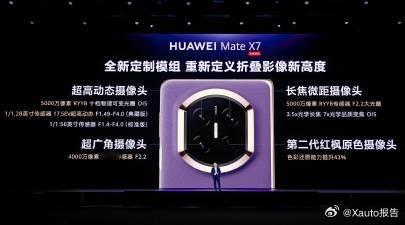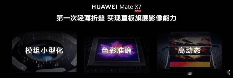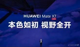 华为MateX7展开赢很大华为MateX7第二代红枫影像,精准定格舞台高光时刻。华为Mate X7:麒麟9030+鸿蒙6,玄武架构+红枫影像,5600mAh+66W,云锦工艺折叠屏,12999元起 。
