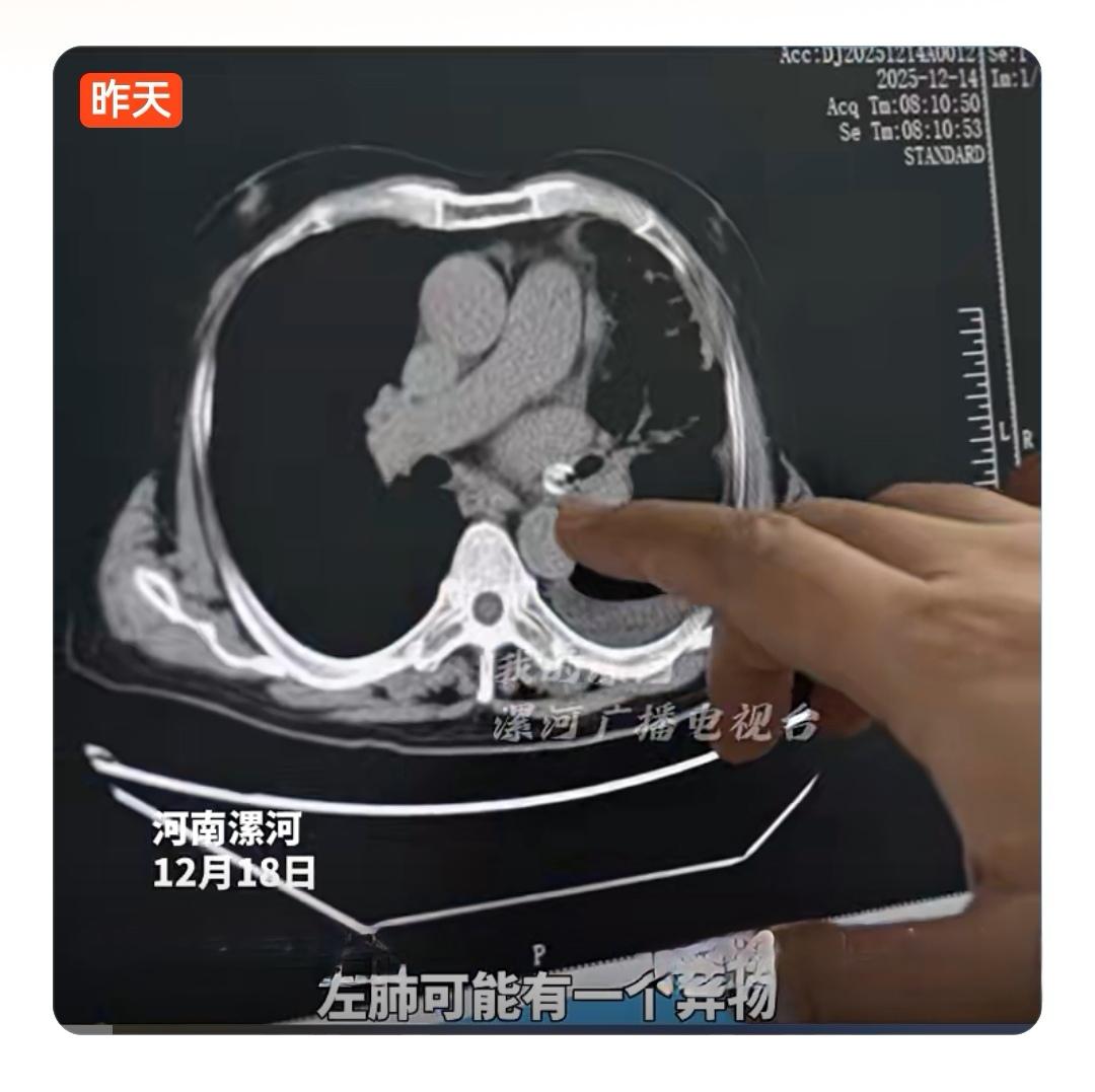 近日,河南漯河一名患者因反复咳嗽、咯血到医院就诊,结果CT检查让医生大吃一惊:他