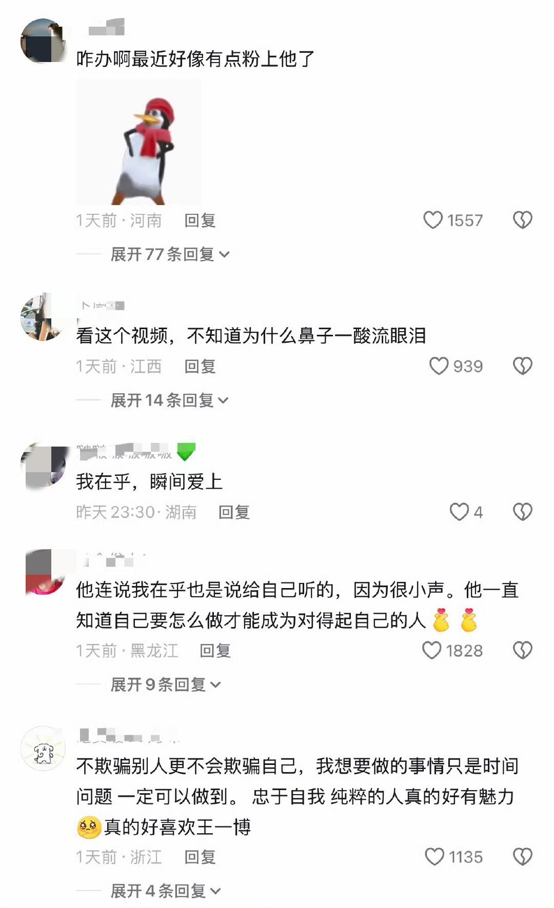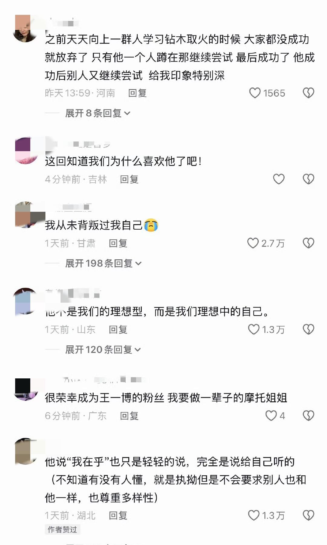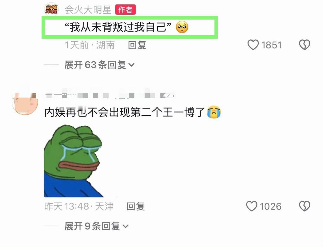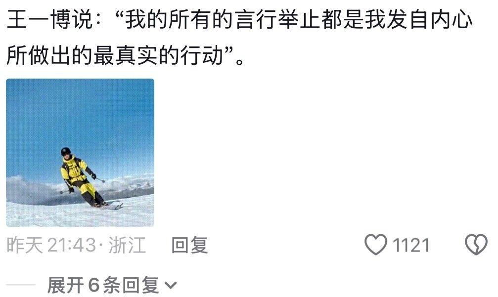 “我从未背叛过我自己” “身在内娱名利场,心在纯真桃源地,难得” “他连说我在乎都会说给自己听的,因为很小声” “一万步少一步,天地无察,但是我知道,“我在乎””。 王一博,一个纯真的纯粹的俯仰无愧天地更无愧自己的人,做自己热爱的事做到最好,我不是做给谁看的,但是我自己知道。 “内娱再也不会出现第二个王一博了”,这句话深感认同。 王一博