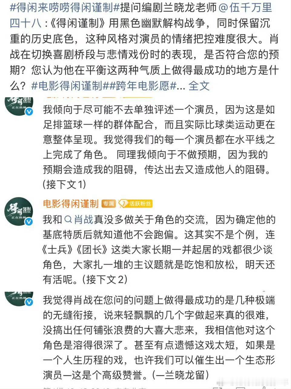 肖战说拍得闲谨制最难的是台词文化人兰老师又夸肖战是生态型演员,肖战就是吃透,精准揣摩角色外形,台词,心路历程,真挚又自然的让你找不到表演痕迹电影得闲谨制肖战说拍得闲谨制最难的是台词
