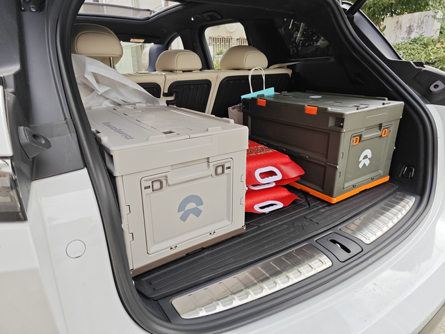 ES6后备箱还挺能装 话说新6的后备箱储物空间真的挺大的 商城里买了俩置物箱 一放,看着还真的蛮干净整洁 啥没用有用的东西都往里面一扔 眼不见心不烦hh 我盲猜肥六可以放仨个这样的储物箱hh 正常放28寸的行李箱我觉得也可以放俩 再说后排全部放倒 那立即拥有超大空间 鱼竿、滑雪板、高尔夫球包...... 感觉全都放得下