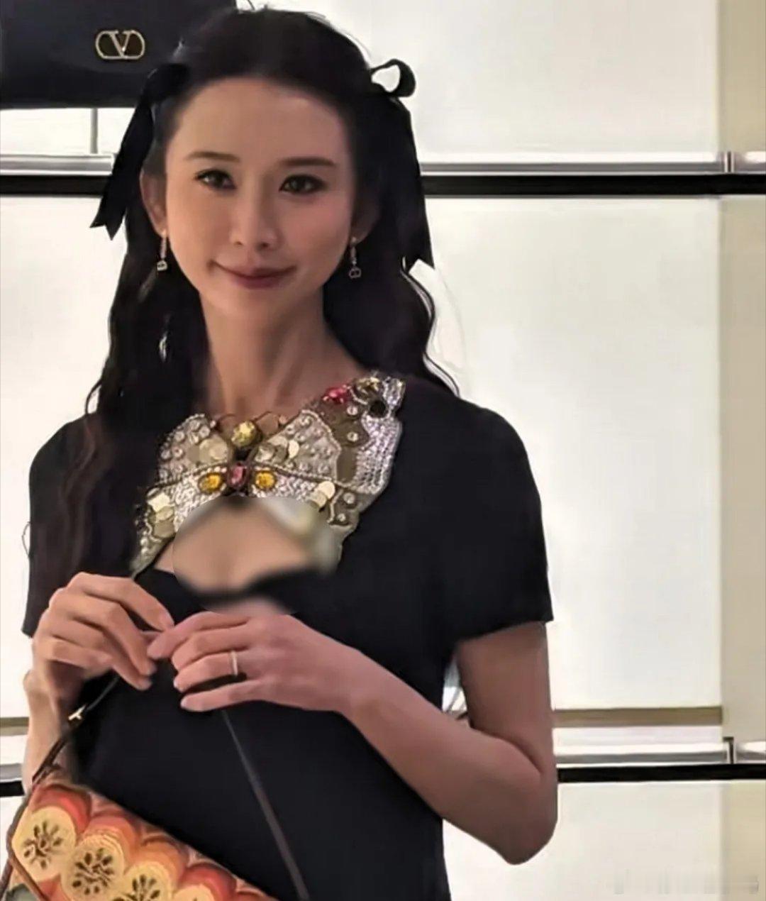 51岁林志玲在上海亮相,无名指戴着婚戒,脸上有肉很年轻,一副老娘很美的表情,但袜子“廉价感”十足,像网红穿的款式,把整体气质都拉下来了。