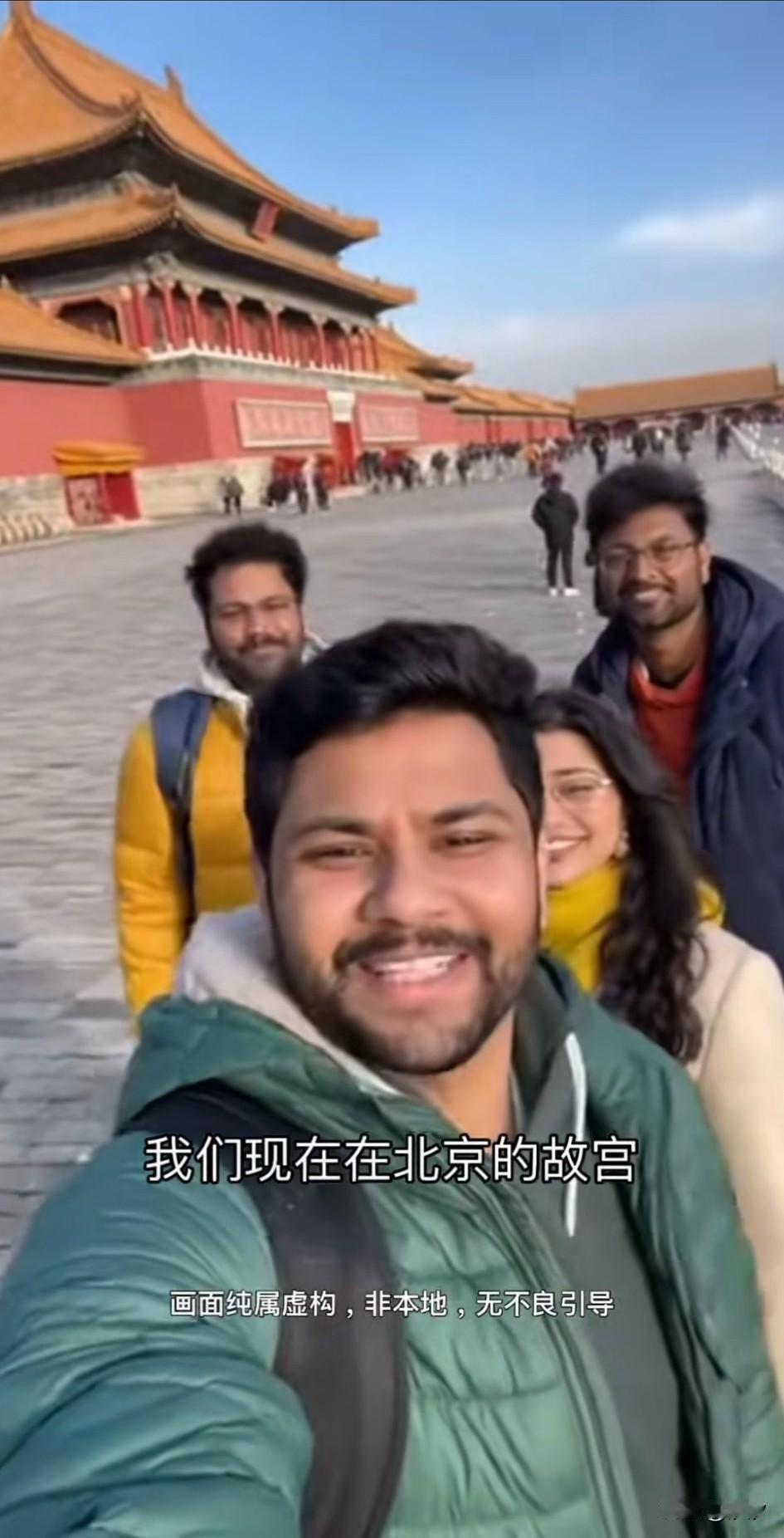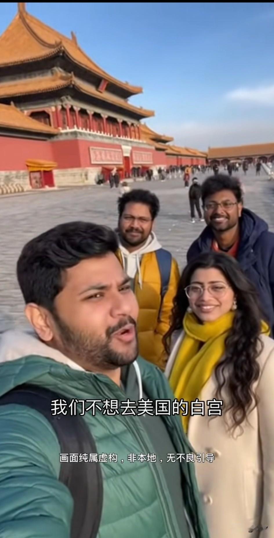 四名印度留学生, 他们来到了北京的故宫参观, 四个人开心坏了, 录了一个短短的小