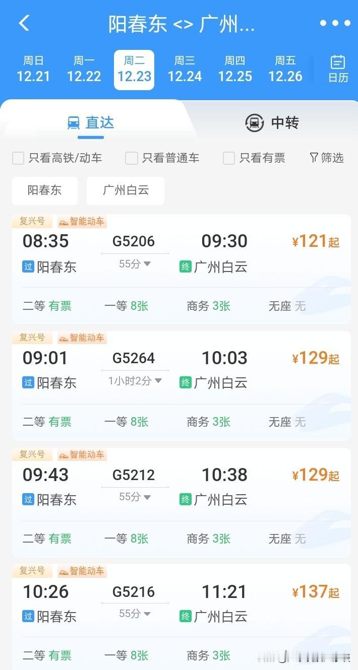 阳春东站至广州白云站每日开行10趟高铁! 阳春东站到广州白云站属于广湛高铁上行主