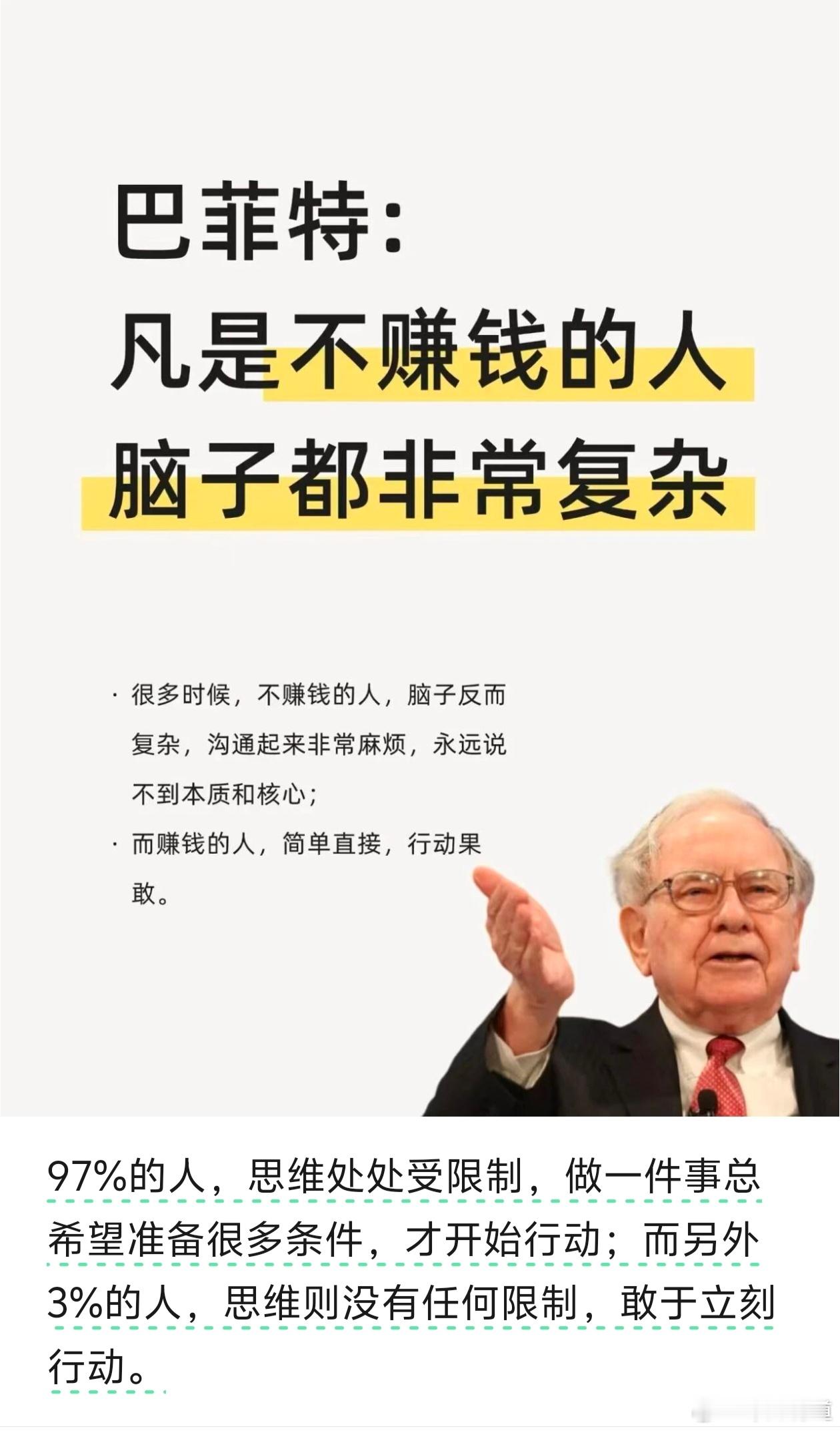 AI之后,大V智能体都是给它喂料。然后量化反杀你!这也是渣男不能长的原因,因为量化主机在渣男那里接着,你的一举一动全部是亮化的。用巴菲特的思维对服务量化是最好的方法。巴菲特说不赚钱的人脑子复杂,简单直接才能成功,这话有一定道理。他提到搞钱的思维技巧,像把“要不要做”换成“值不值做”,算好成本和收益,试错成本能承受就直接干。还有把“我想要”换成“我能给”,搞钱核心是交换价值,要展示自己能创造的价值。巴菲特投资秘诀 而普通人搞钱思维 但这“简单”也说得轻巧。专注一个领域没错,可过度专注就像画地为牢。象研究K线,越来越复杂。反而赚不到钱。投资量化AI量化交易AI量化交易量化系统