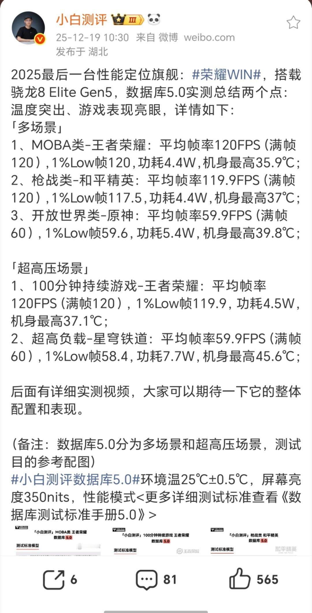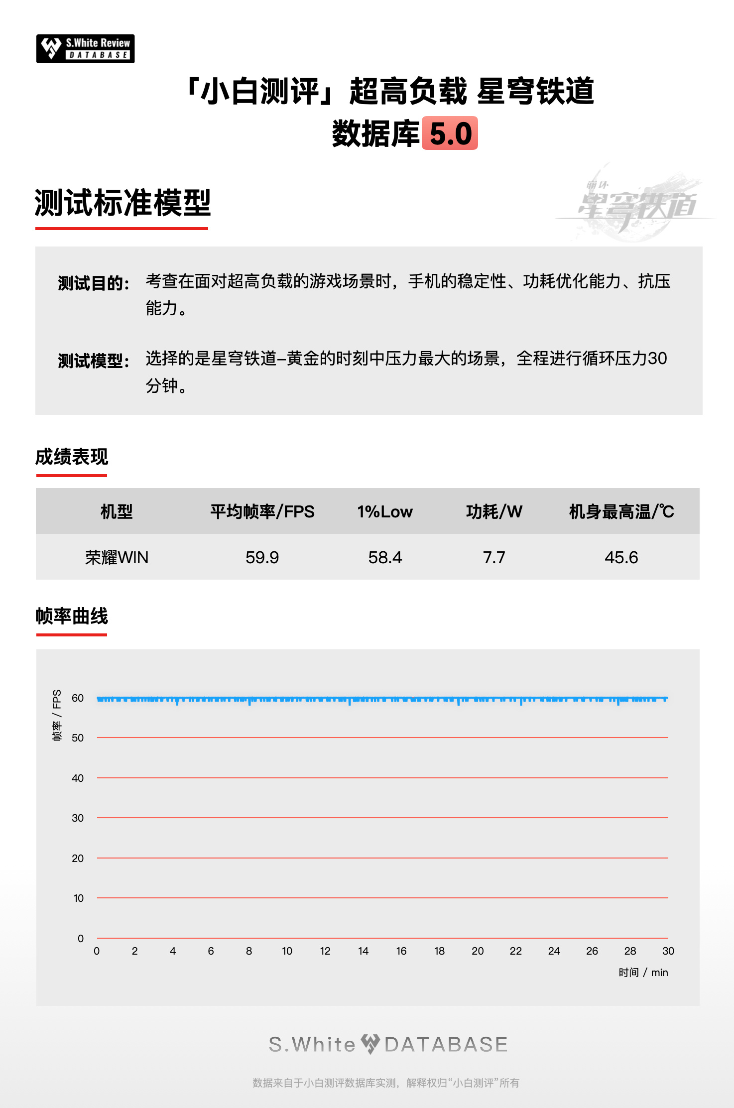 大家可以看看荣耀WIN的游戏表现,这是小白测出来的数据,可以看出荣耀WIN对这些游戏毫无压力,甚至温控表现也非常出色数码资讯荣耀win
