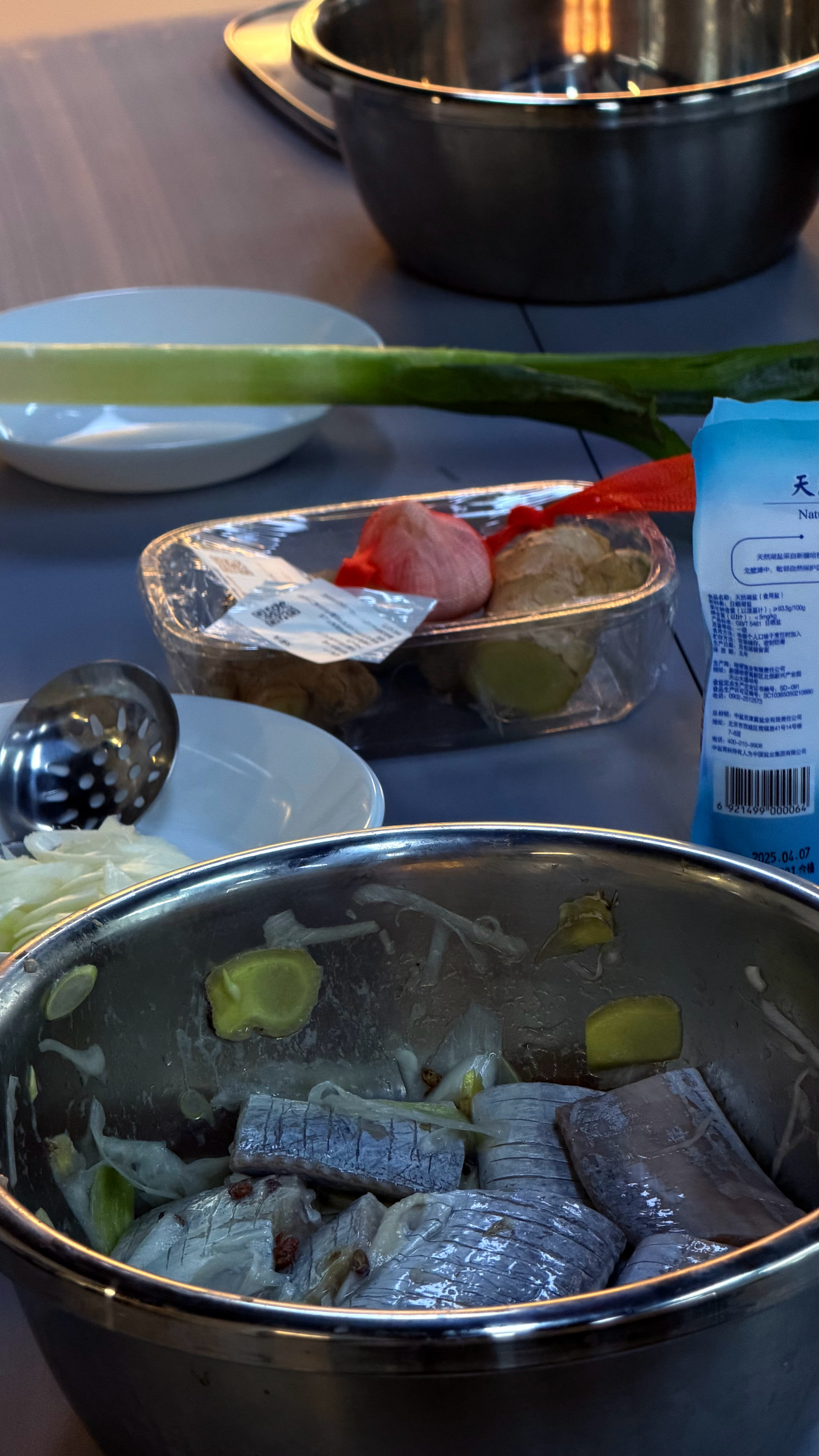今天中午吃炸肉丸、炸带鱼!我先健身一会好多吃点!!嘉琦大厨给力!