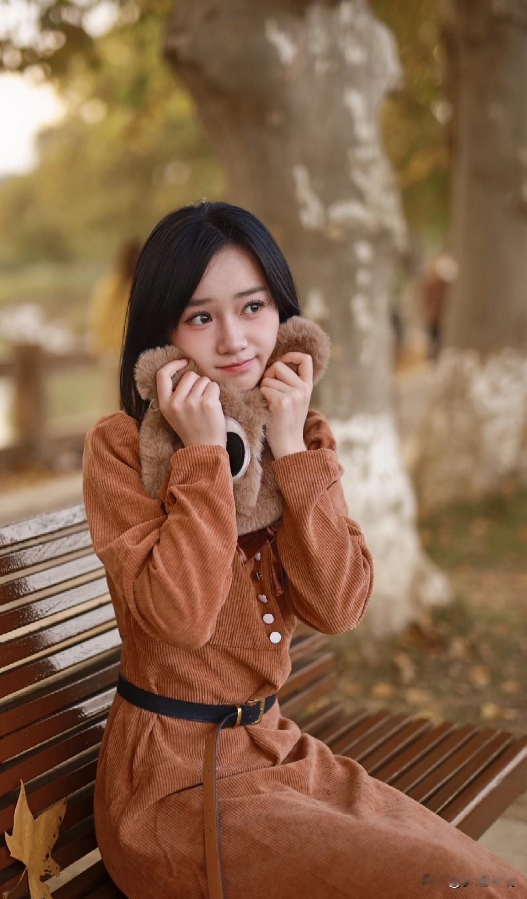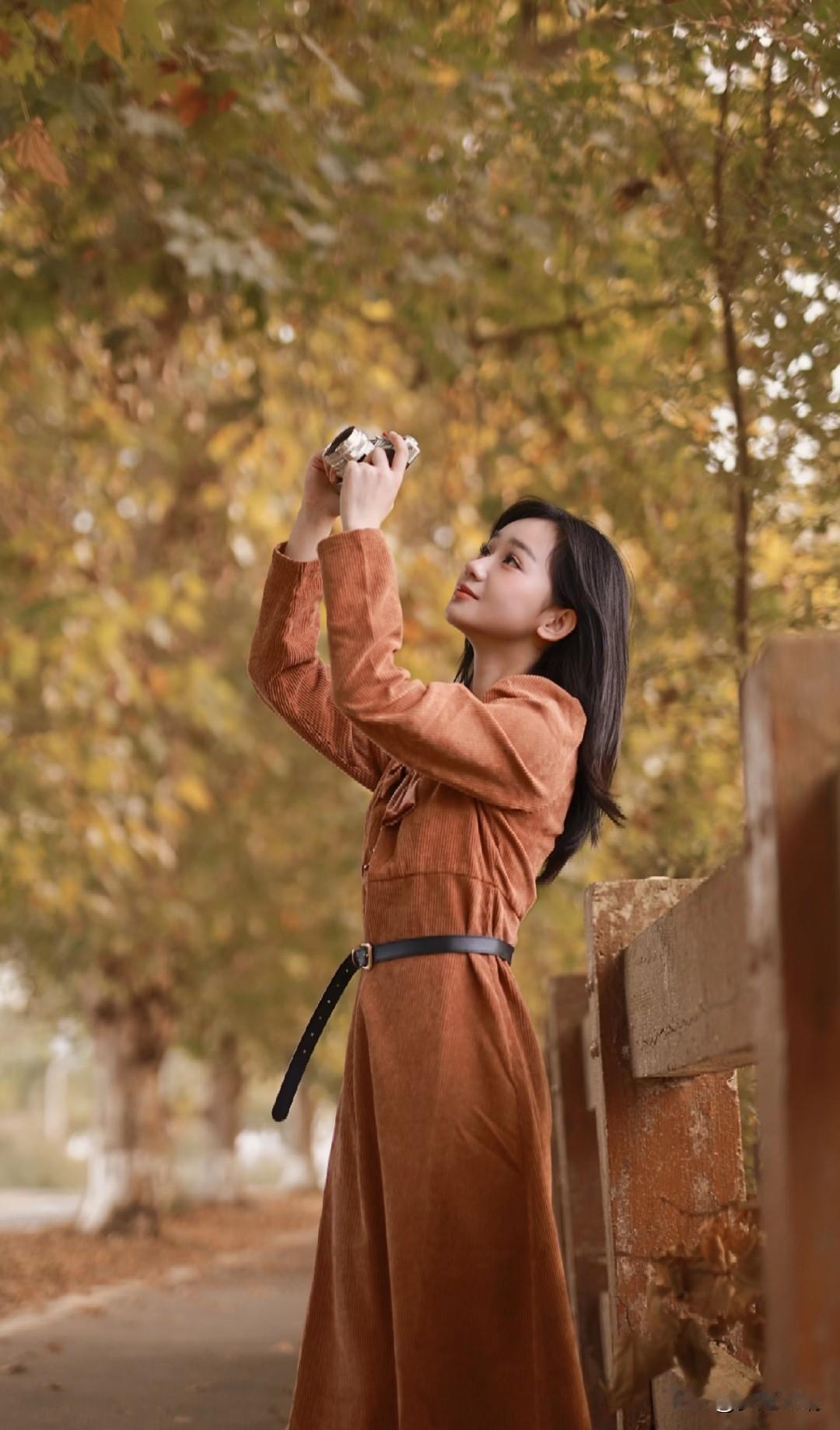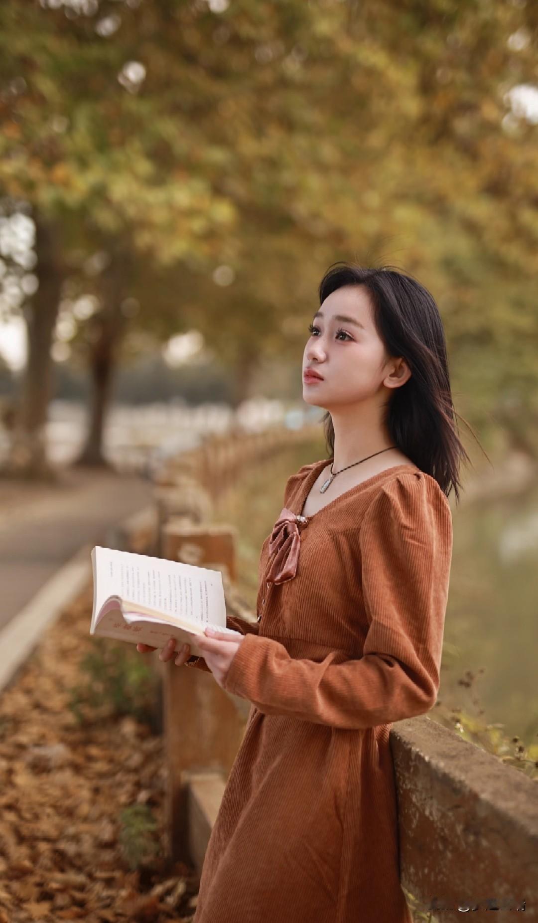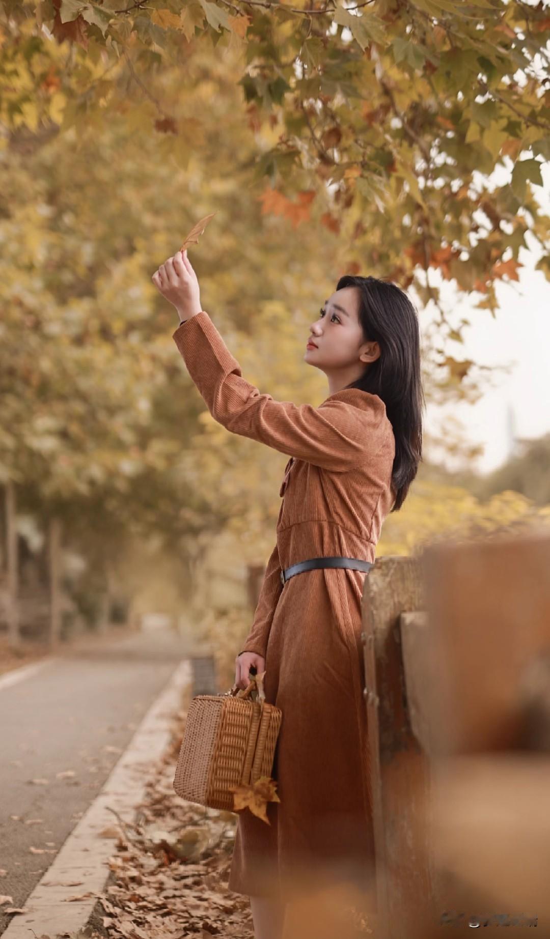 秋日暖阳下,温柔少女侧颜,暖意融融。
